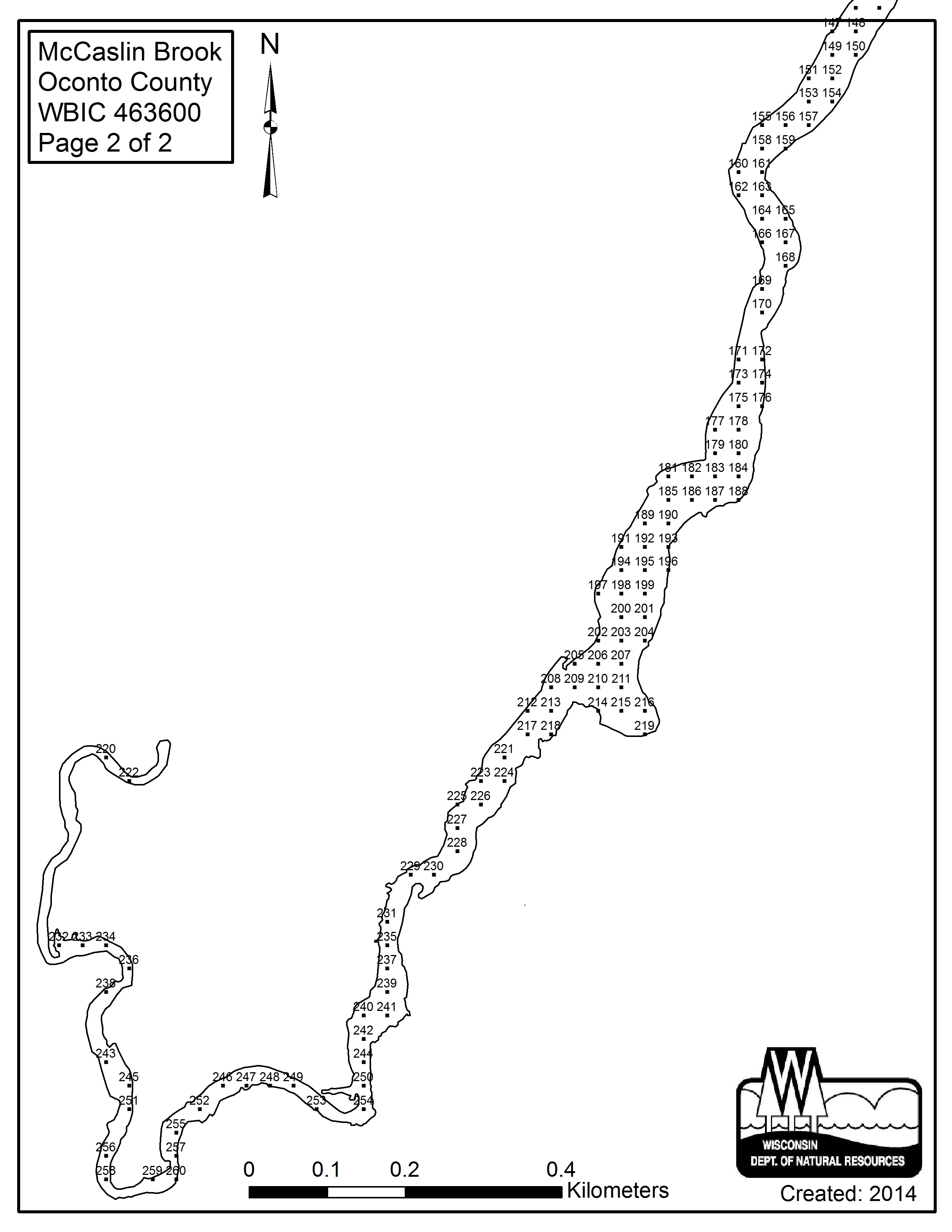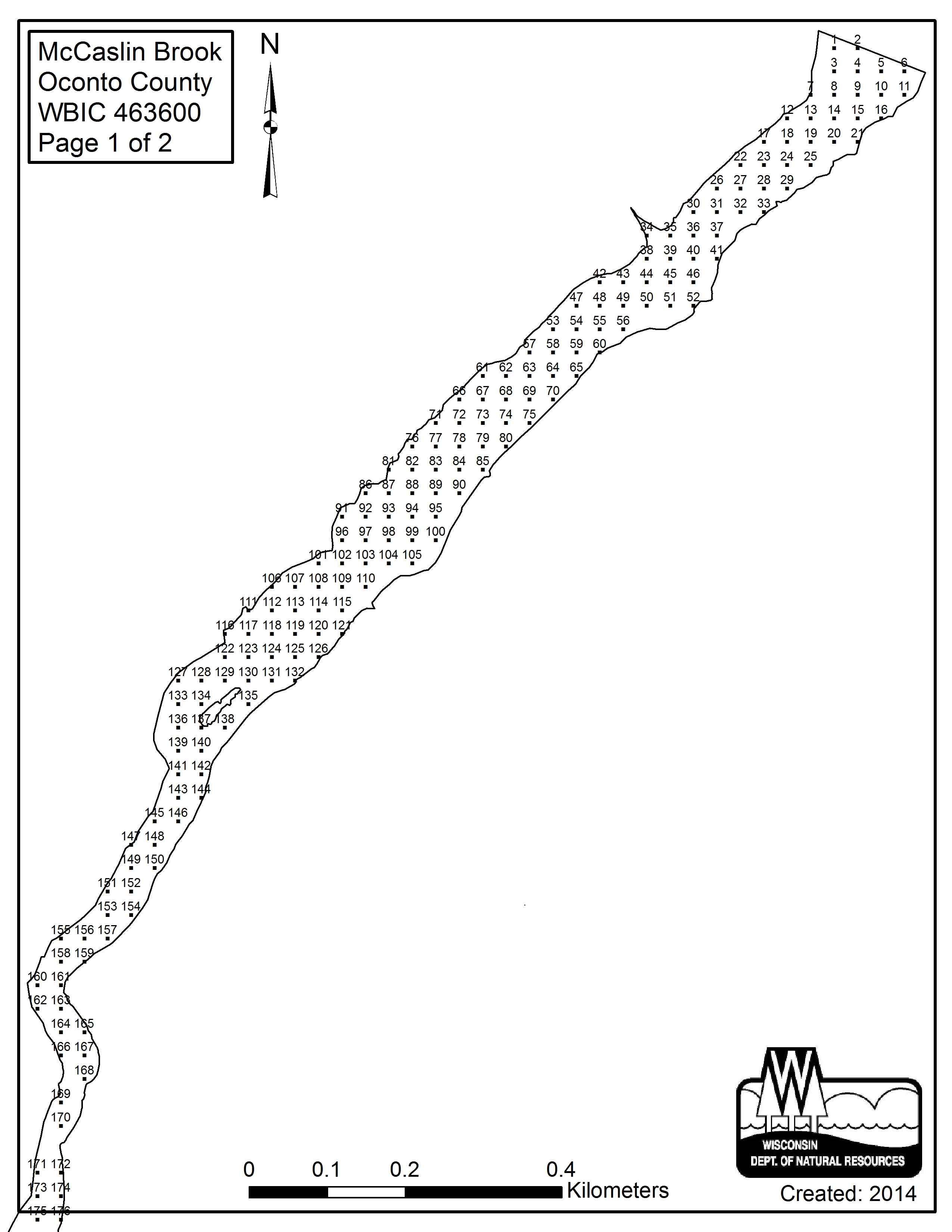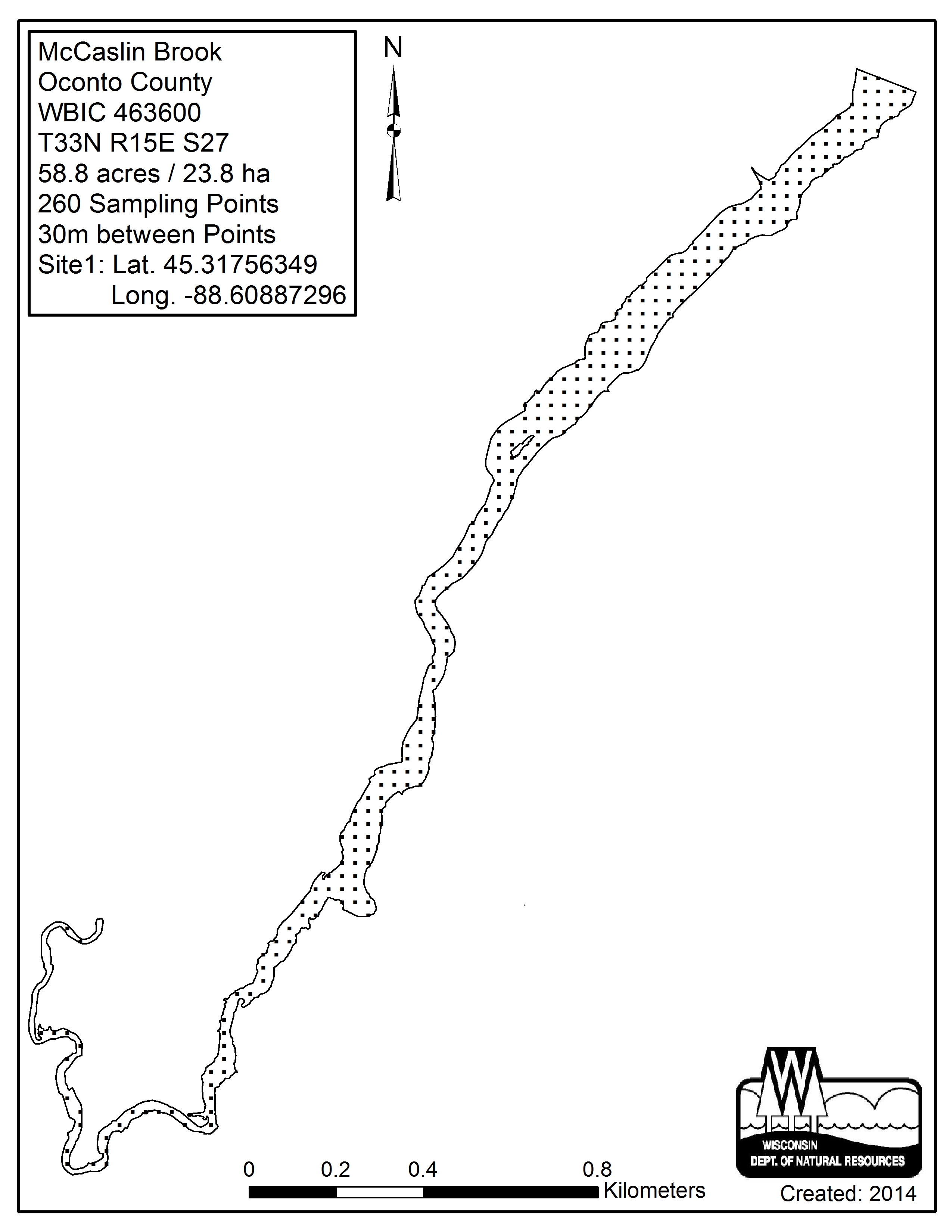 McCaslin Brook, Oconto County - Aquatic Plant Sampling Map (2)(30 mpts)