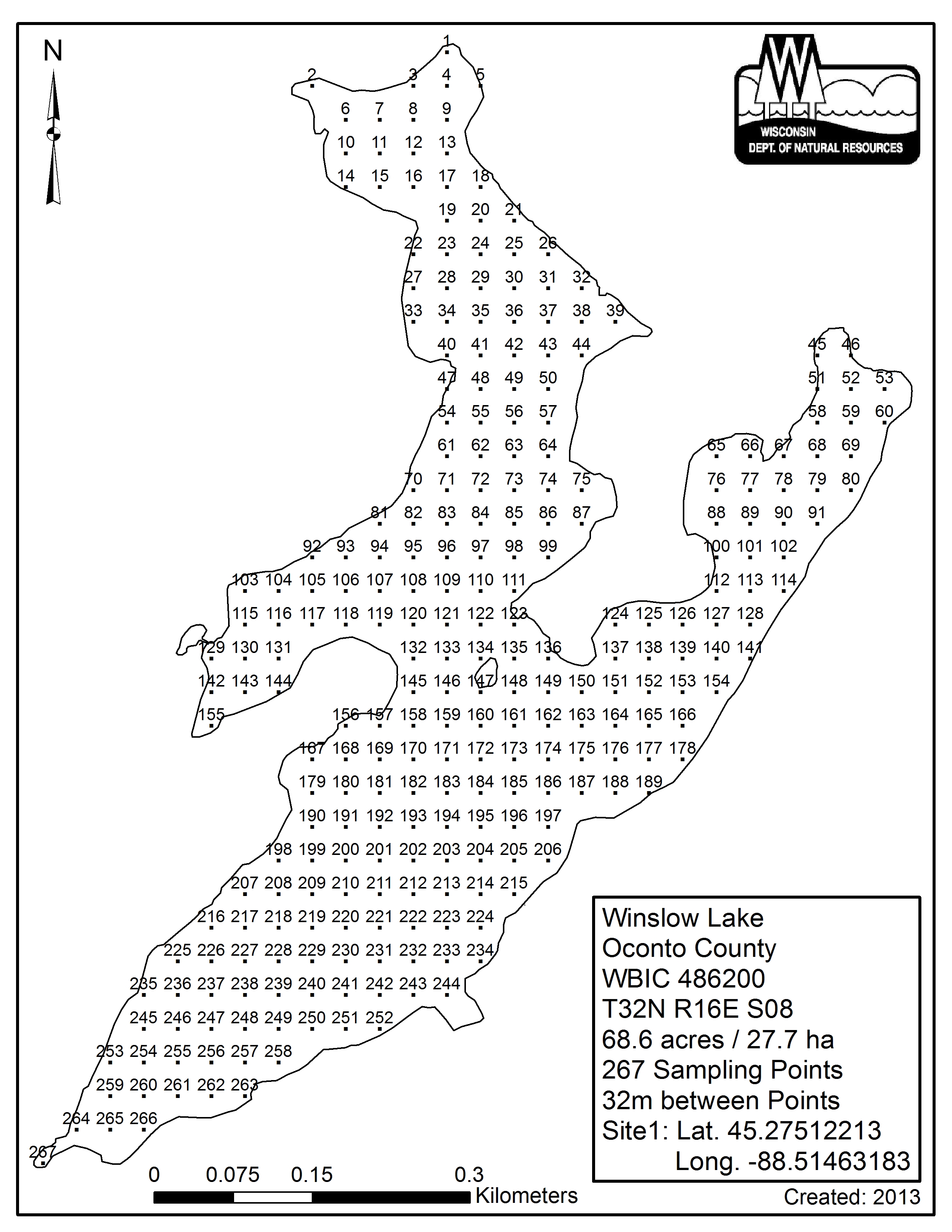 Winslow Lake, Oconto County - Aquatic Plant Sampling Map (32 mpts)