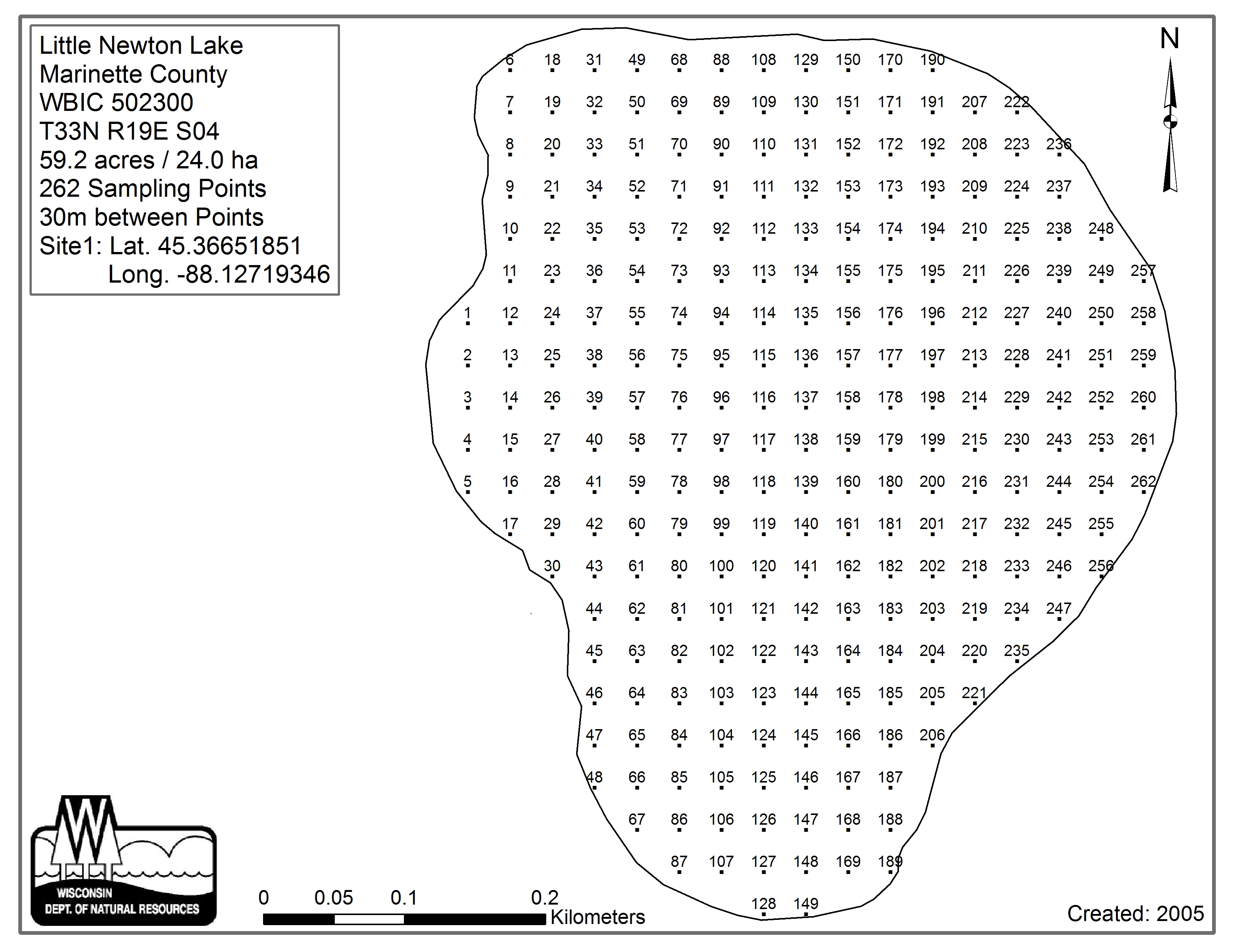 Little Newton Lake, Marinette County - Aquatic Plant Sampling Map (30 mpts)
