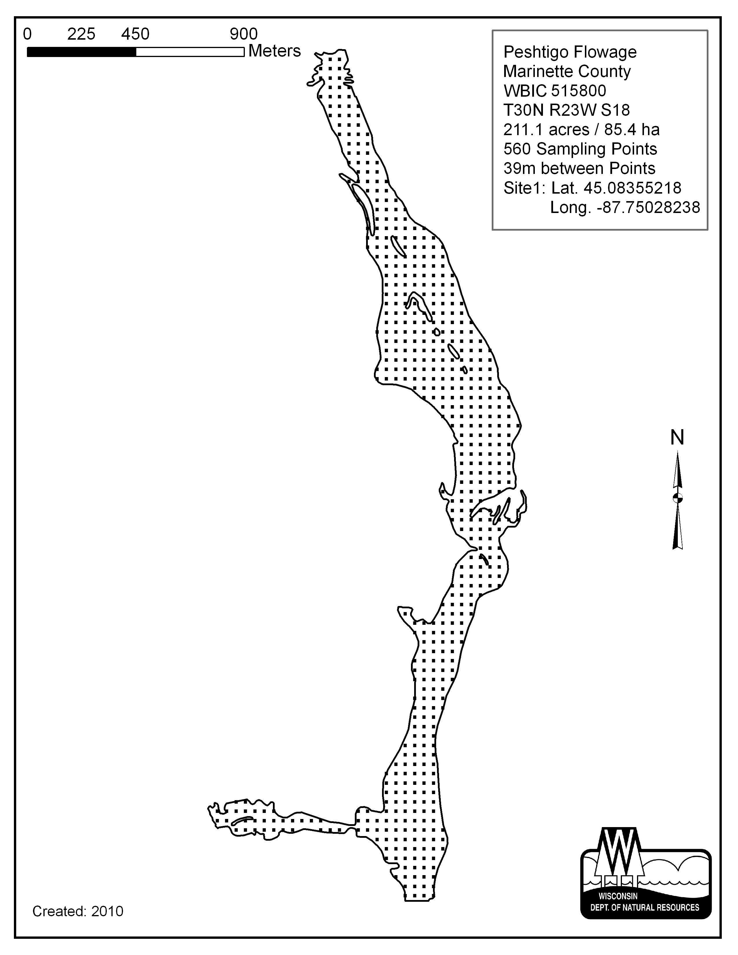 Peshtigo Flowage, Marinette County - Aquatic Plant Sampling Map (2)(39 mpts)