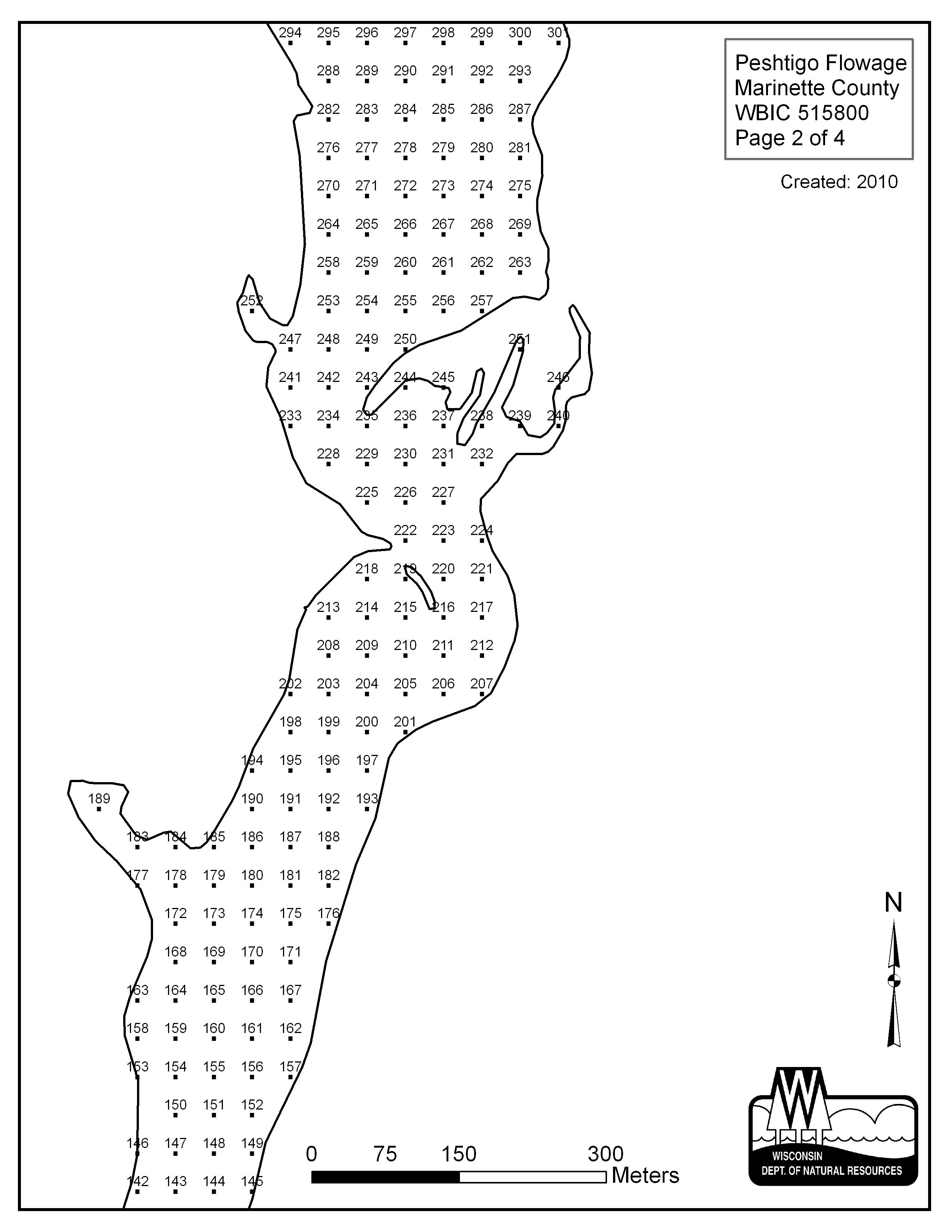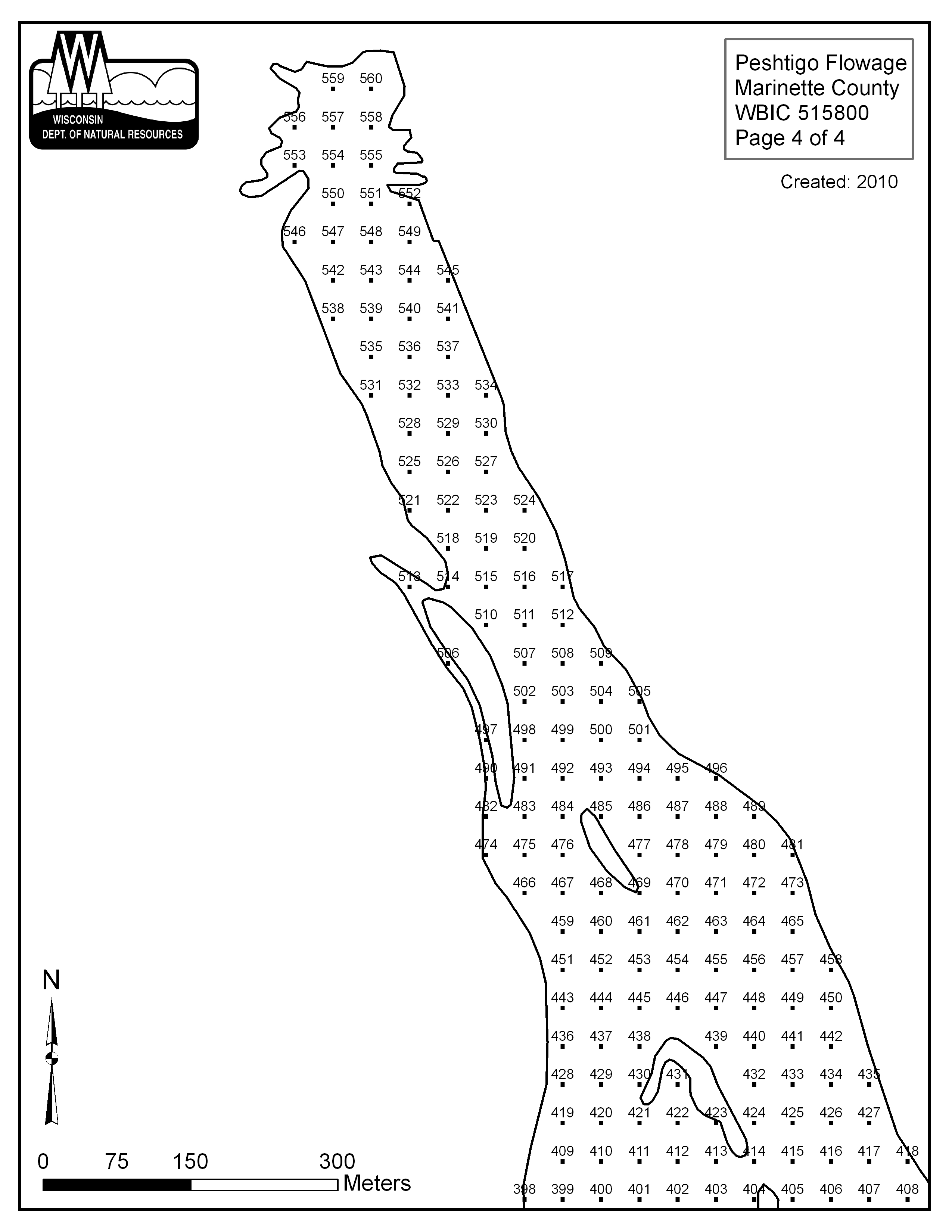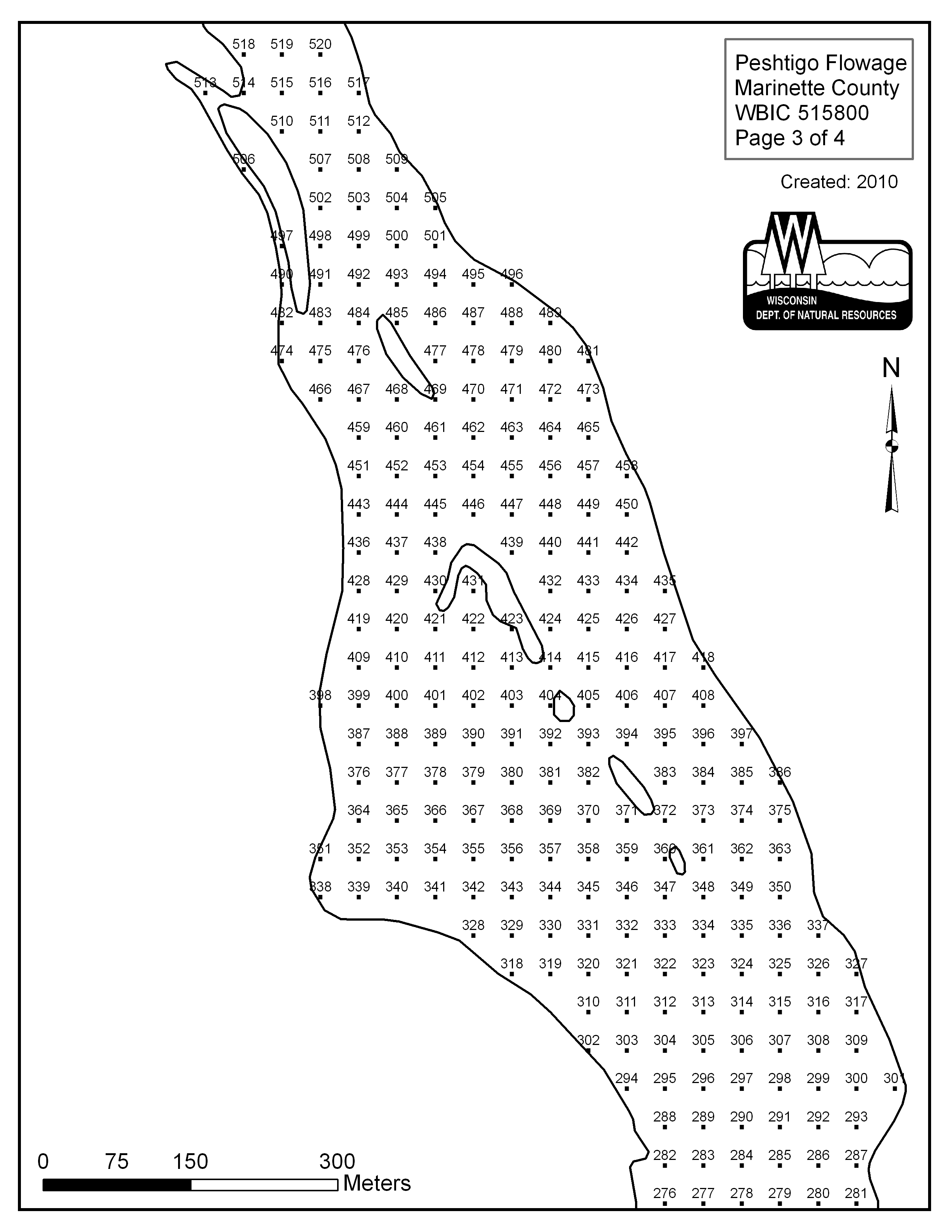 Peshtigo Flowage, Marinette County - Aquatic Plant Sampling Map (4)(39 mpts)