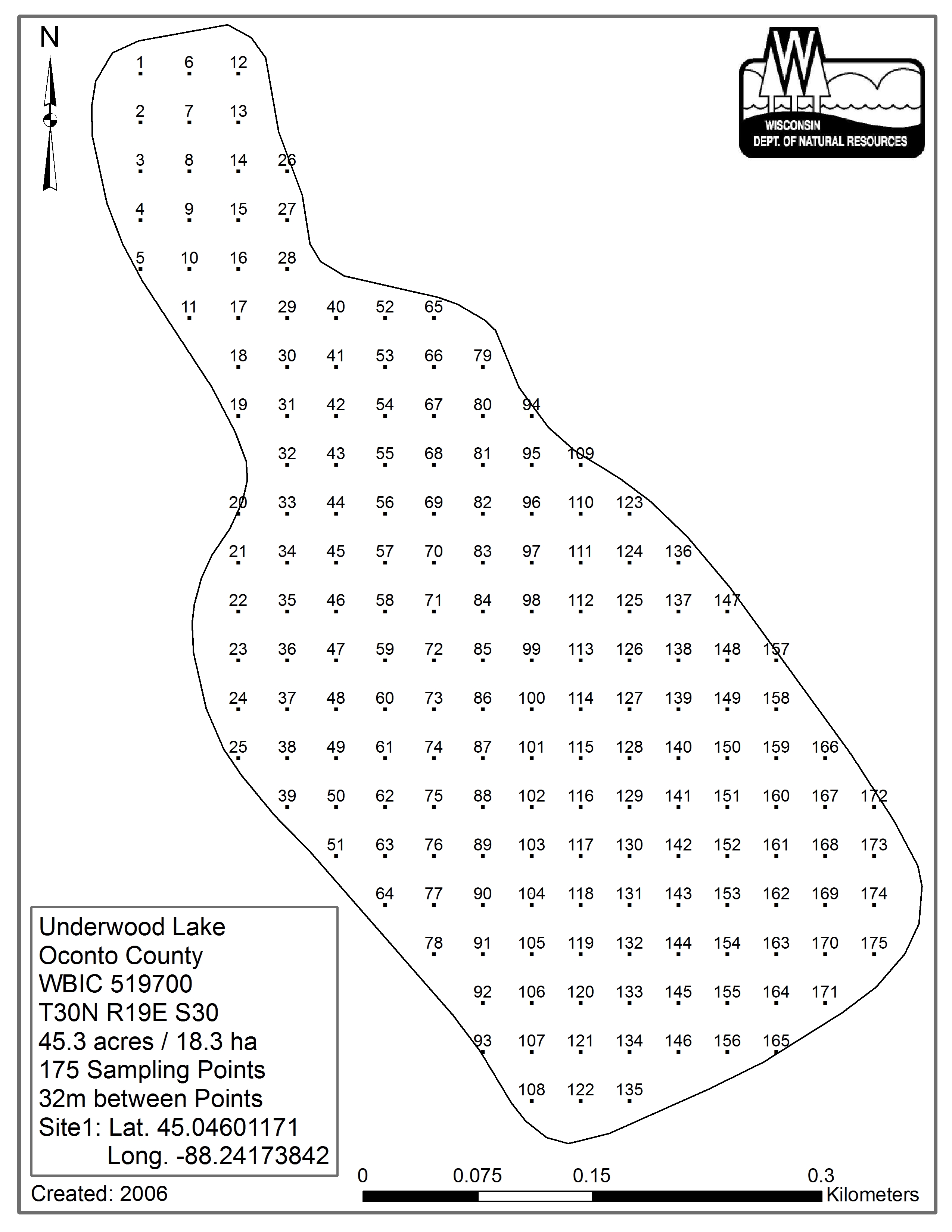 Underwood Lake, Oconto County - Aquatic Plant Sampling Map (32 mpts)