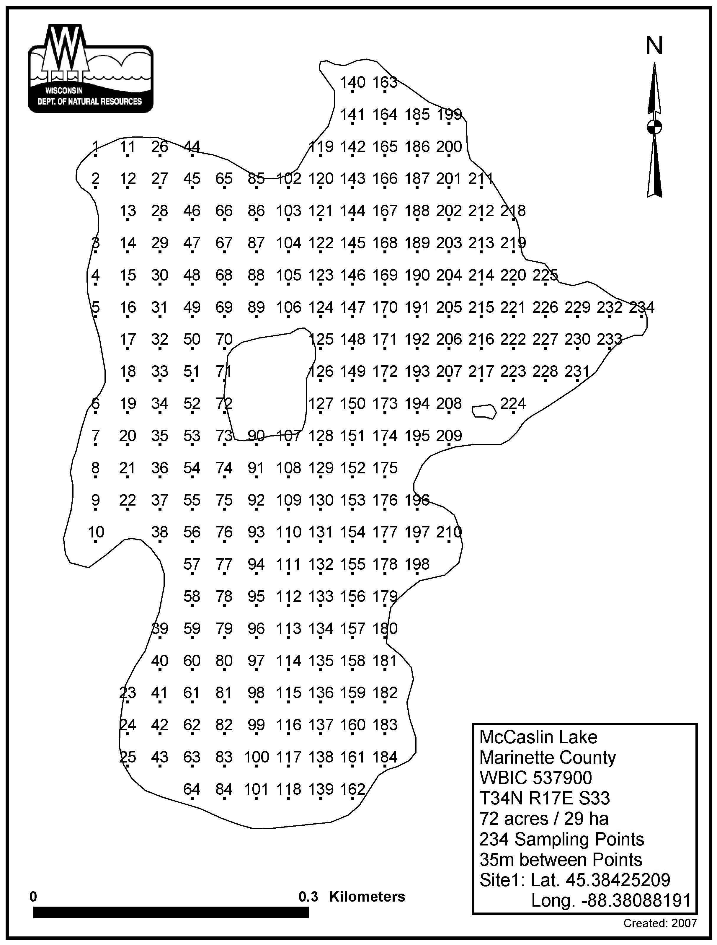 McCaslin Lake, Marinette County - Aquatic Plant Sampling Map (35 mpts)