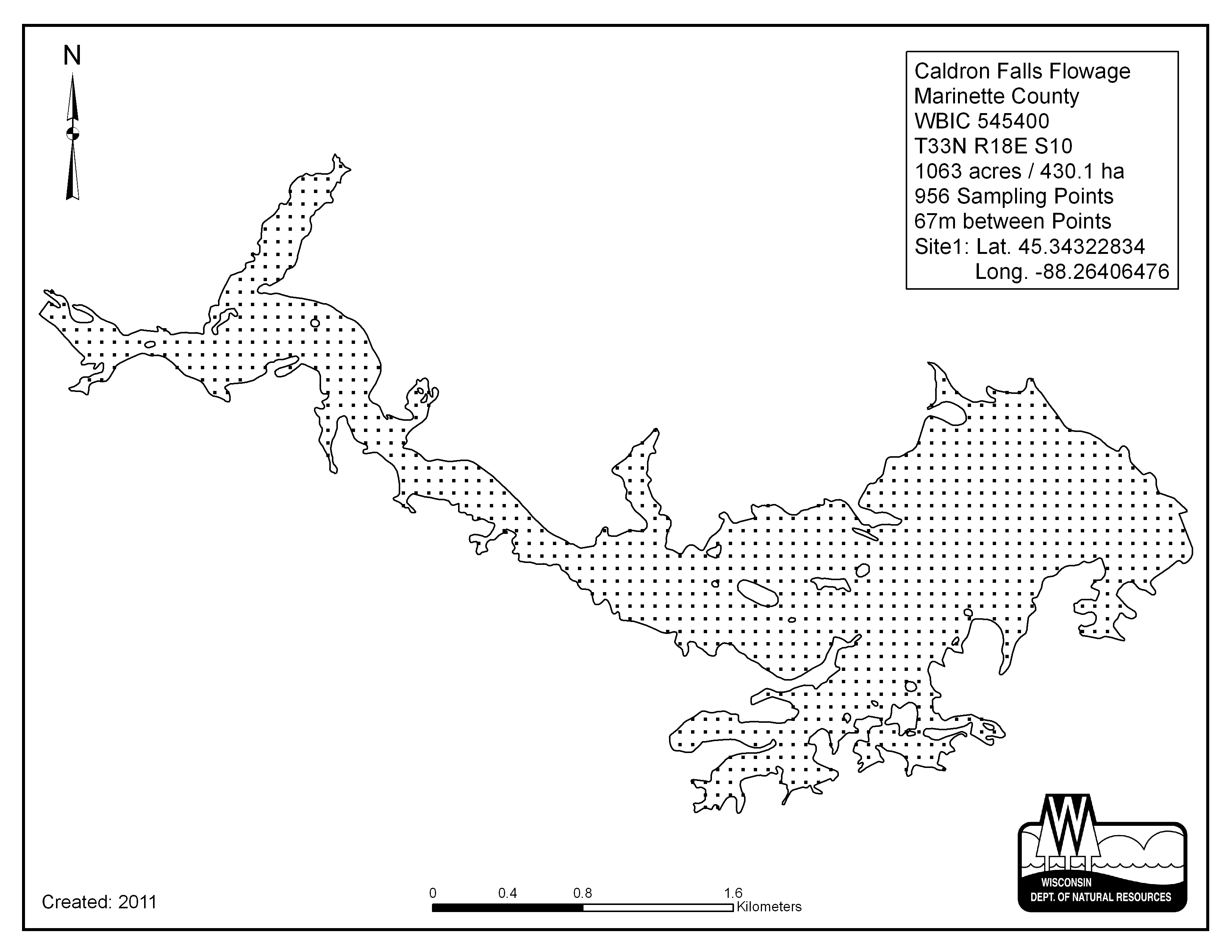 Caldron Falls Flowage, Marinette County - Aquatic Plant Sampling Map (67 mpts)
