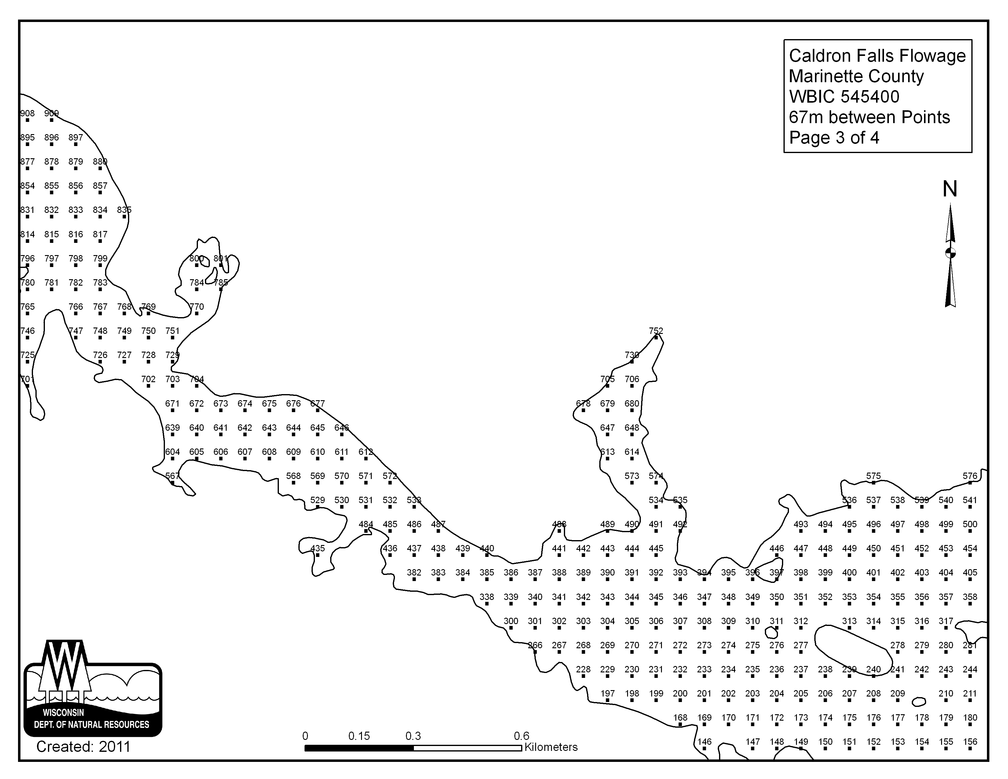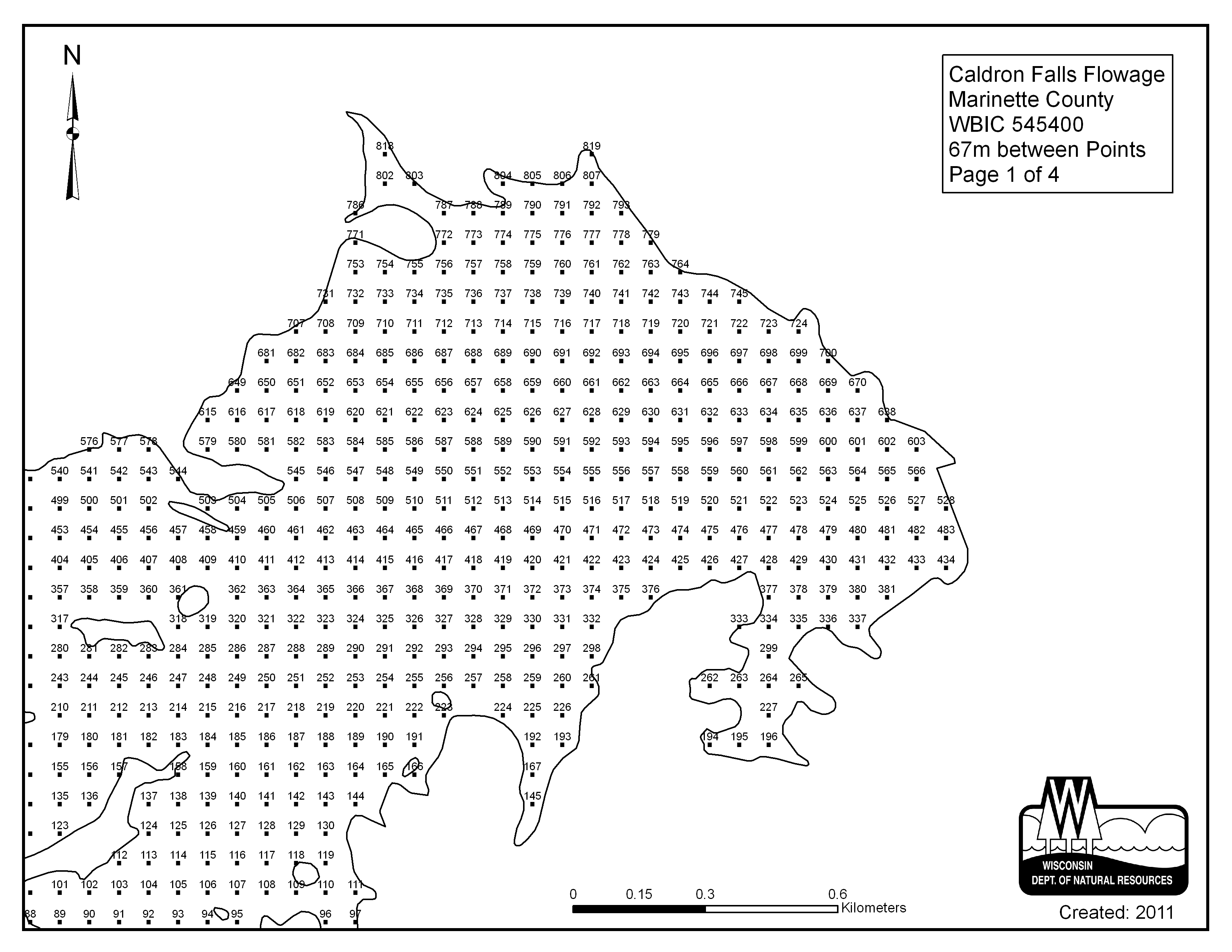 Caldron Falls Flowage, Marinette County - Aquatic Plant Sampling Map (3)(67 mpts)