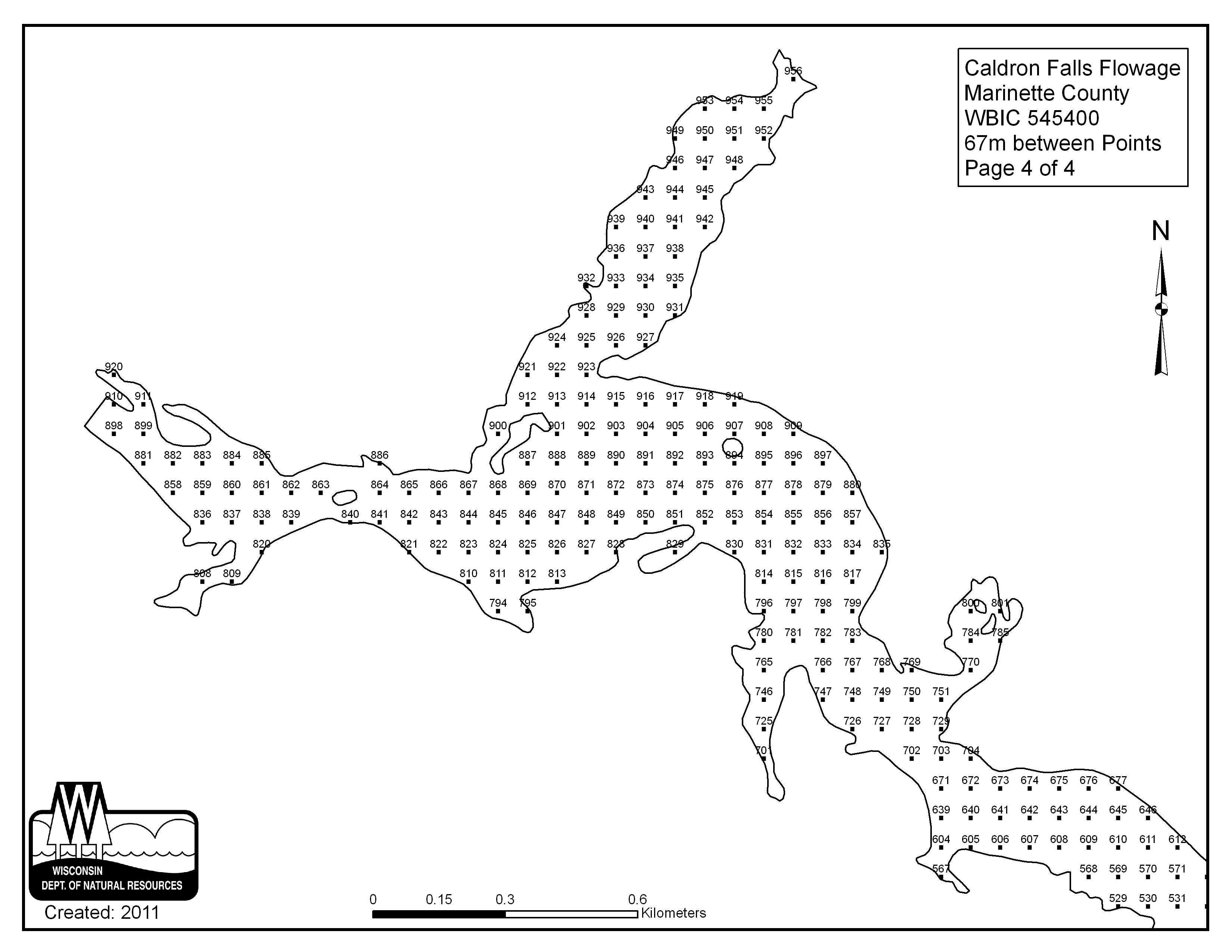Caldron Falls Flowage, Marinette County - Aquatic Plant Sampling Map (4)(67 mpts)