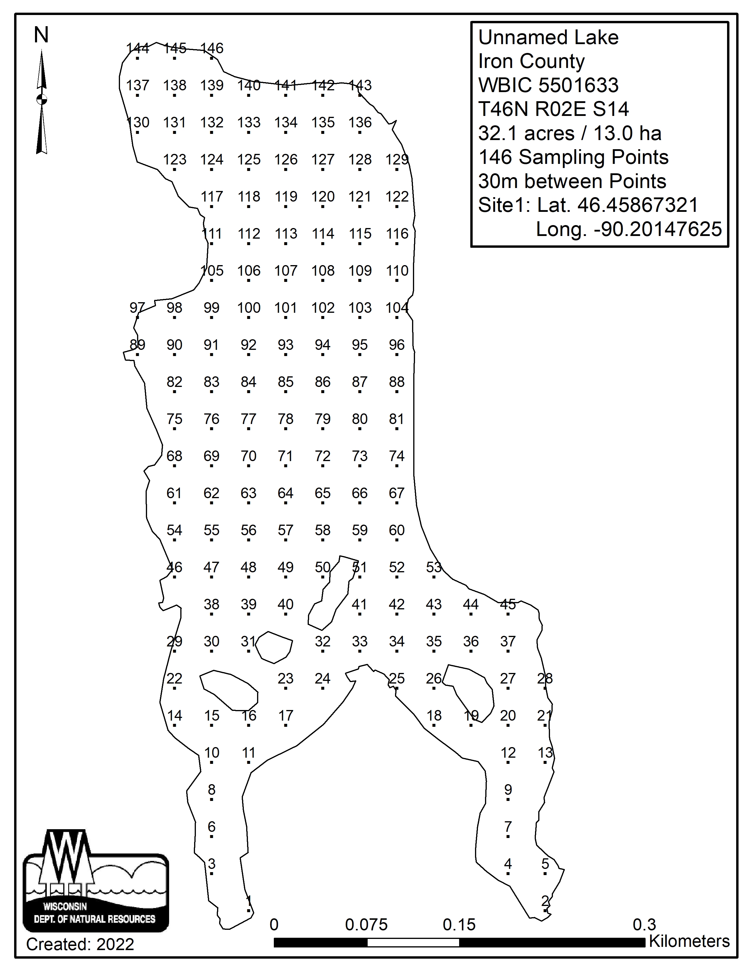 Unnamed Lake, Iron County (5501633) - Aquatic Plant Sampling Map (30 mpts)