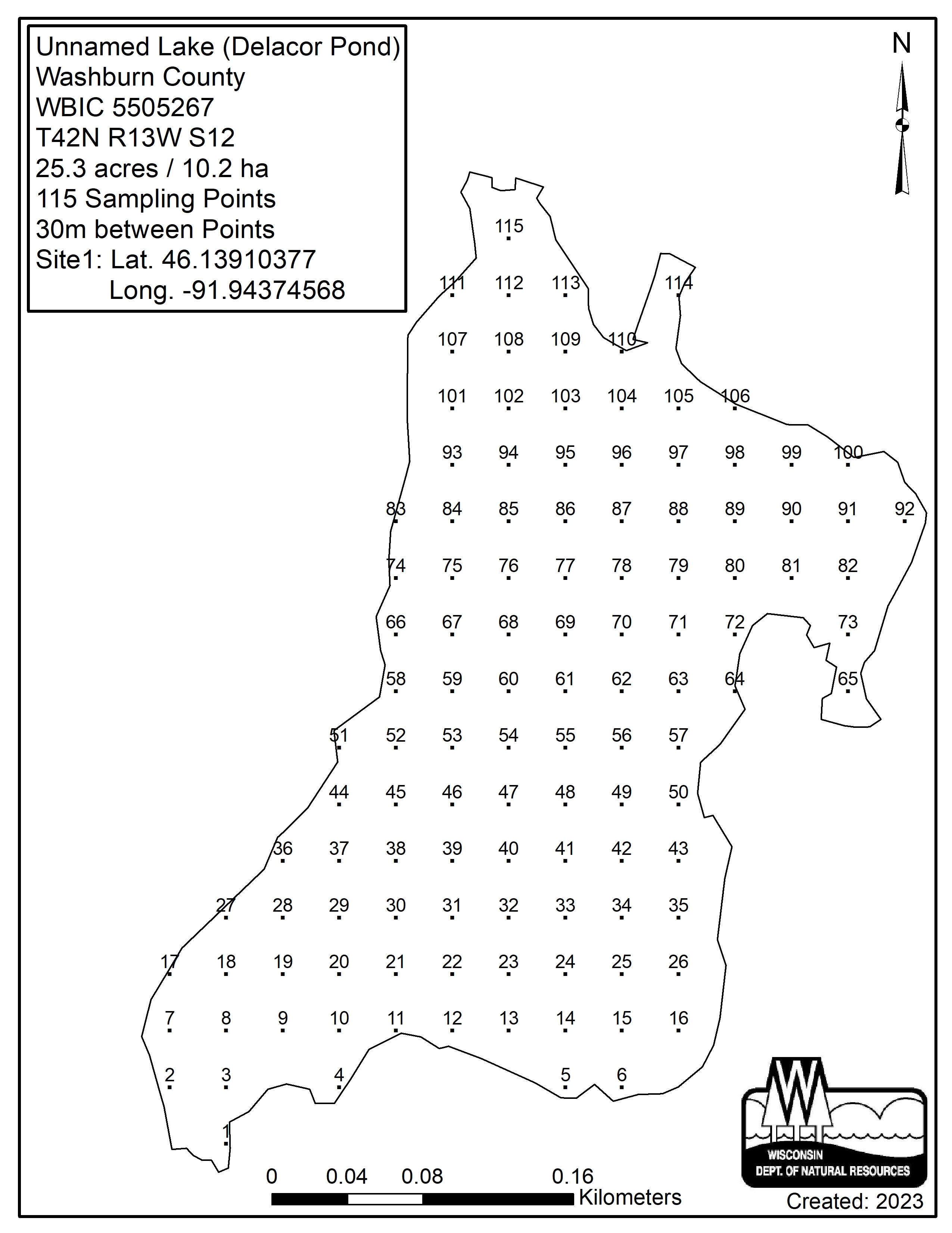 Unnamed Lake, Washburn County (5505267) - Aquatic Plant Sampling Map (30 mpts)