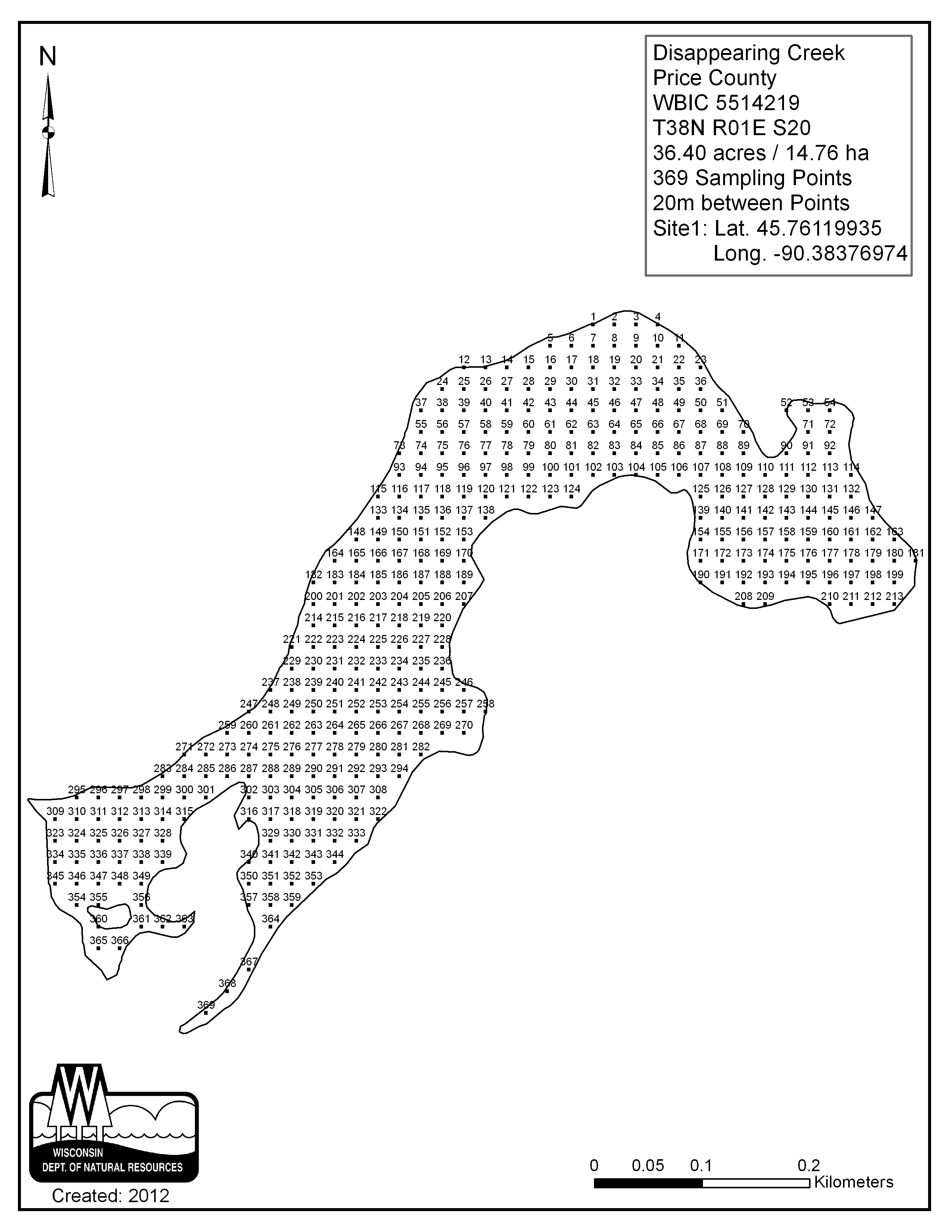 Unnamed Lake, Price County (5514219) - Aquatic Plant Sampling Map (20 mpts)