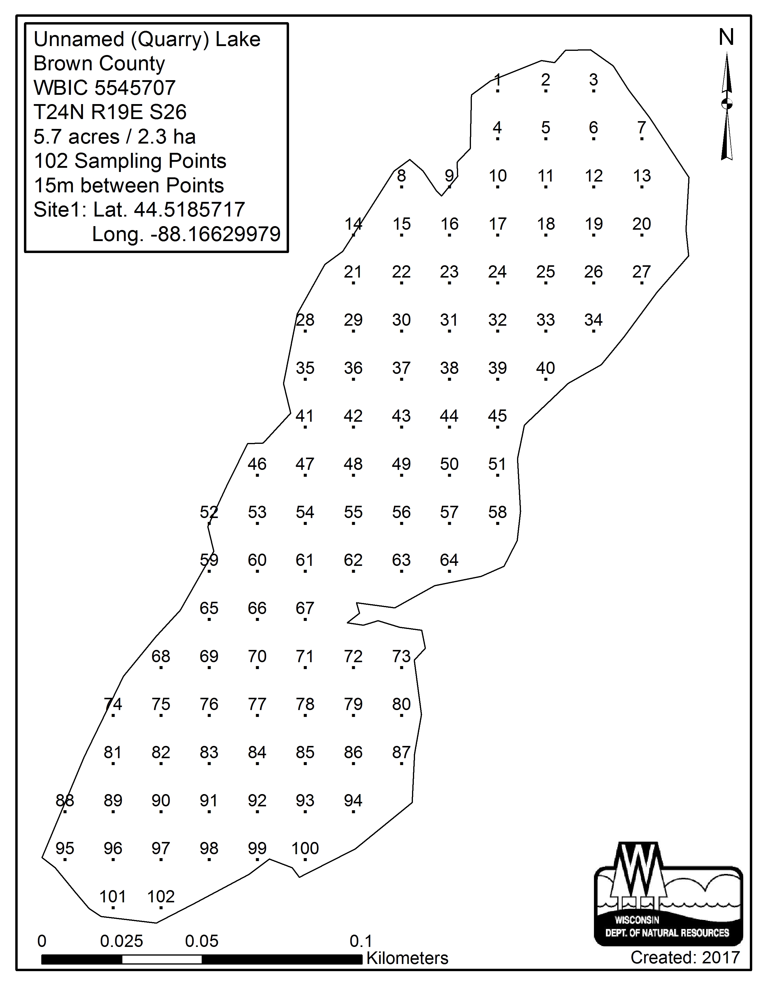 Unnamed (Quarry) Lake, Brown County - Aquatic Plant Sampling Map (15 mpts)