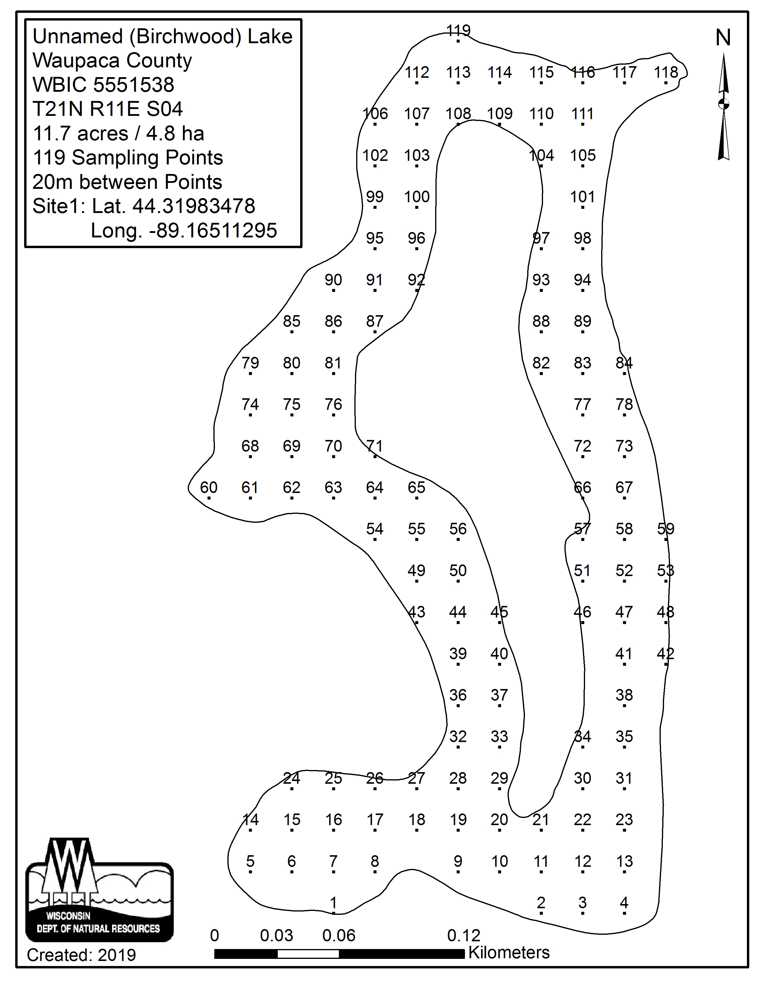 Unnamed Lake, Waupaca County (5551538) - Aquatic Plant Sampling Map (20 mpts)