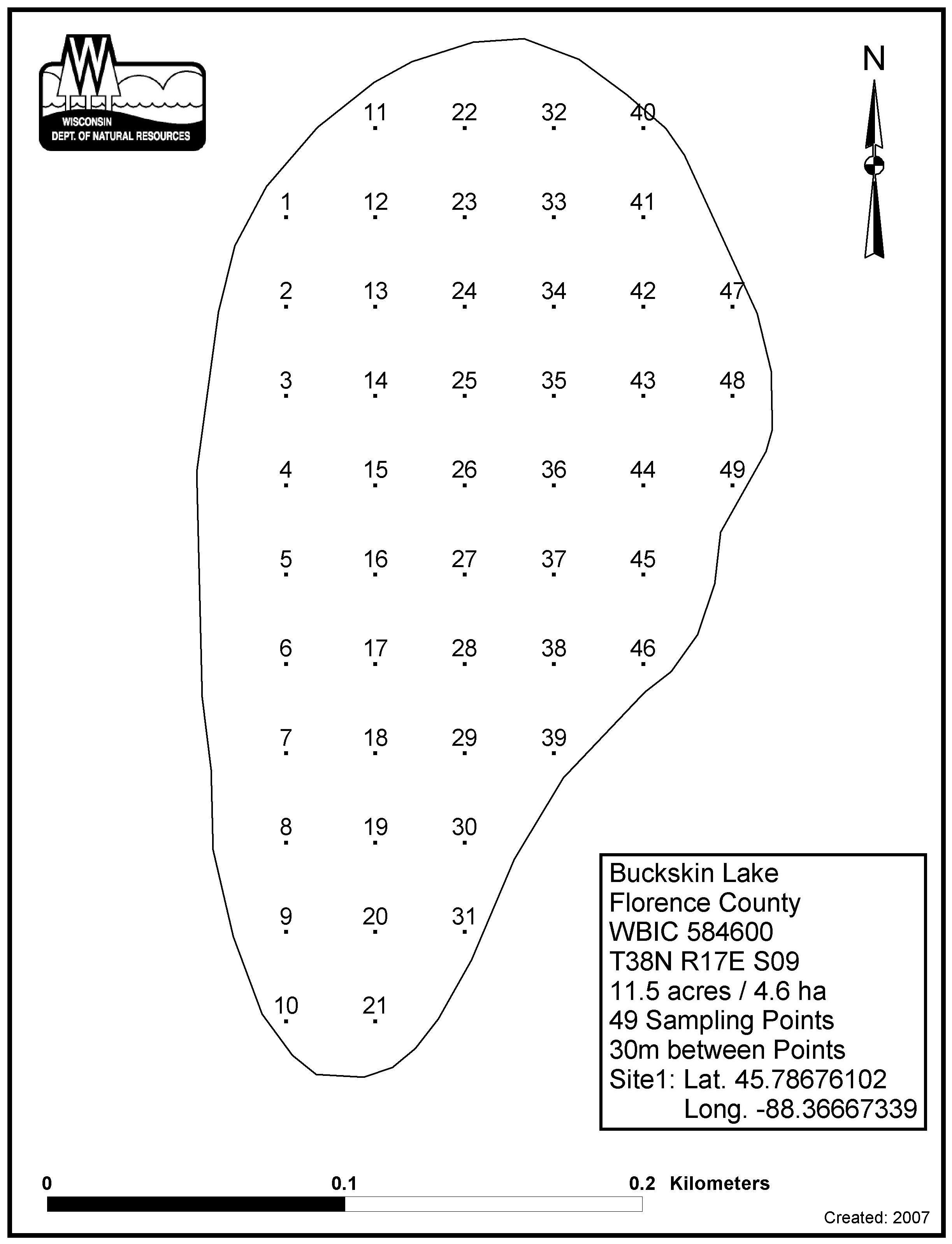 Buckskin Lake, Florence County - Aquatic Plant Sampling Map (30 mpts)