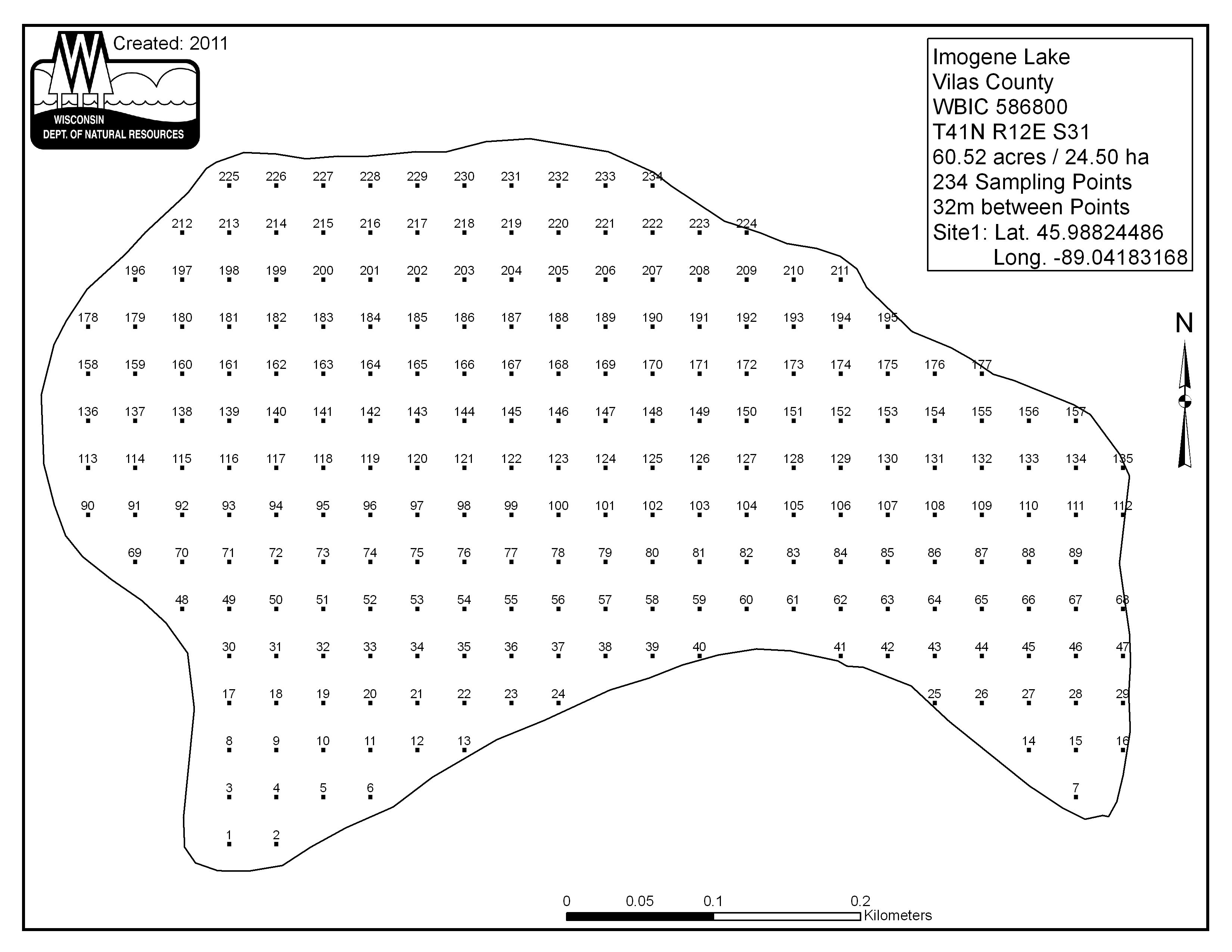 Imogene Lake, Vilas County - Aquatic Plant Sampling Map (32 mpts)
