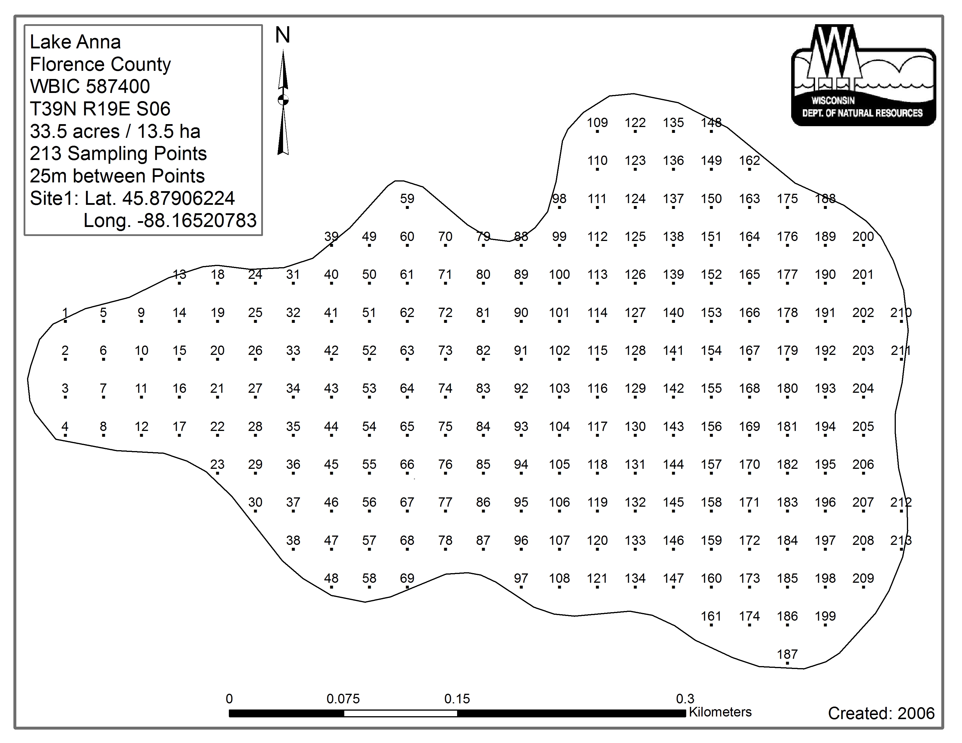 Lake Anna, Florence County - Aquatic Plant Sampling Map (25 mpts)