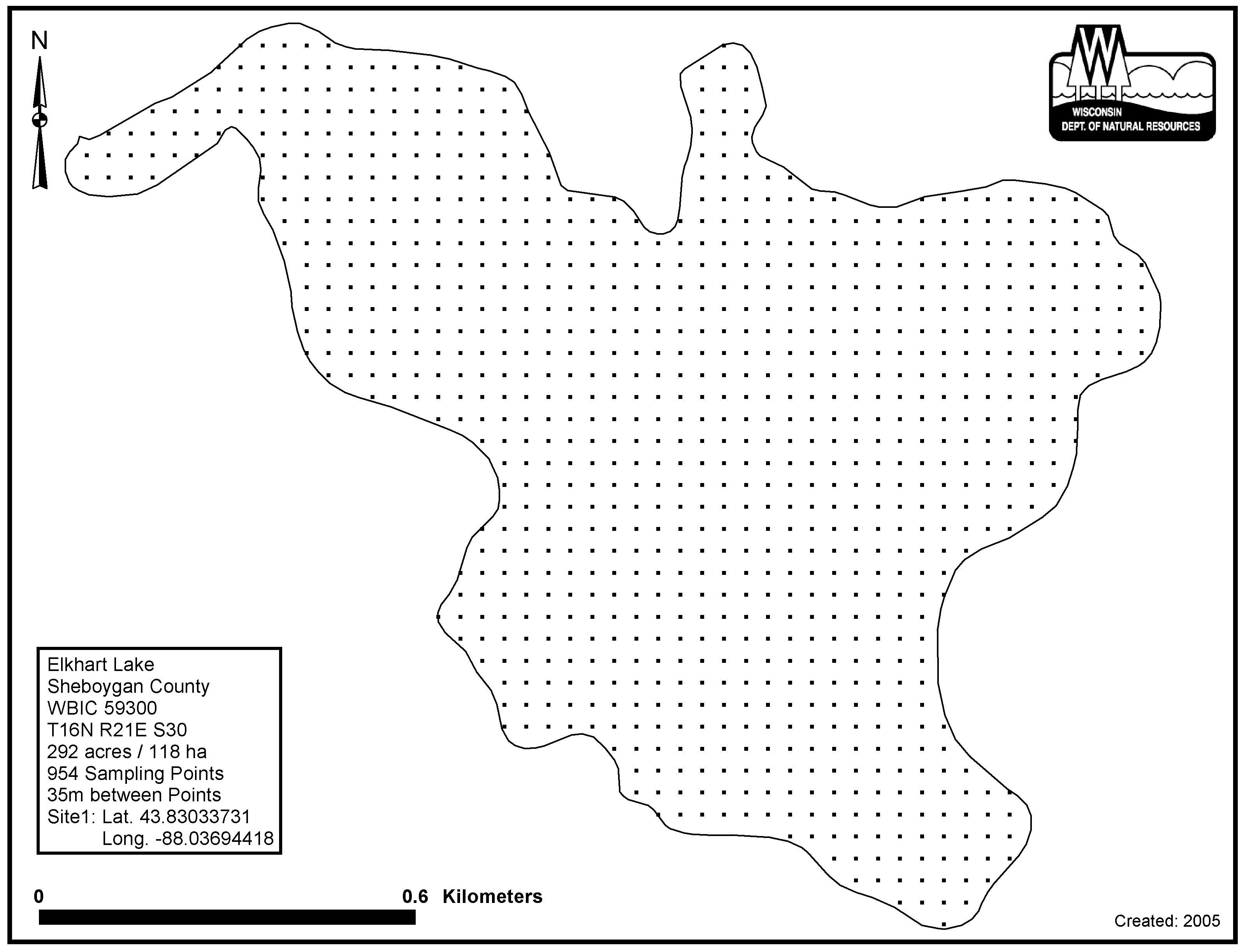 Elkhart Lake, Sheboygan County - Aquatic Plant Sampling Map (35 mpts)