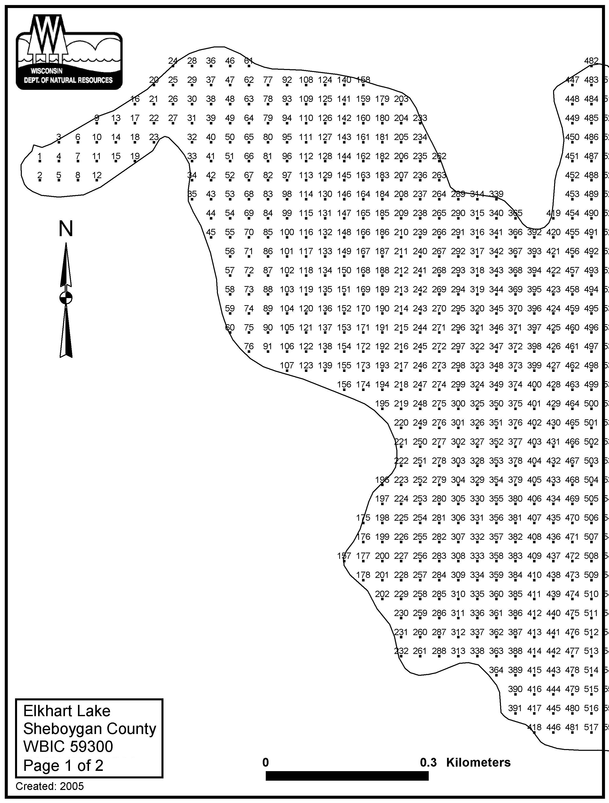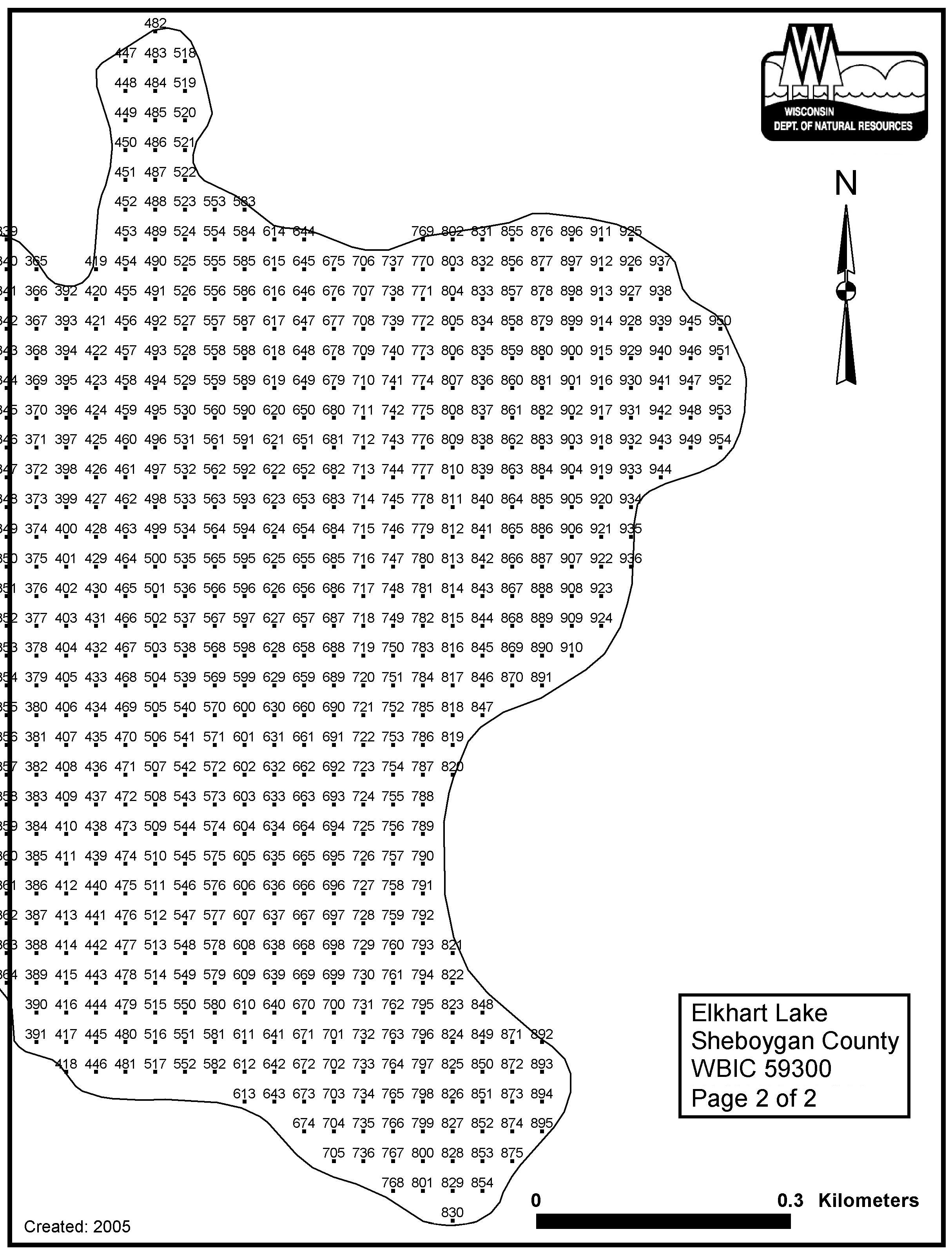 Elkhart Lake, Sheboygan County - Aquatic Plant Sampling Map (2)(35 mpts)