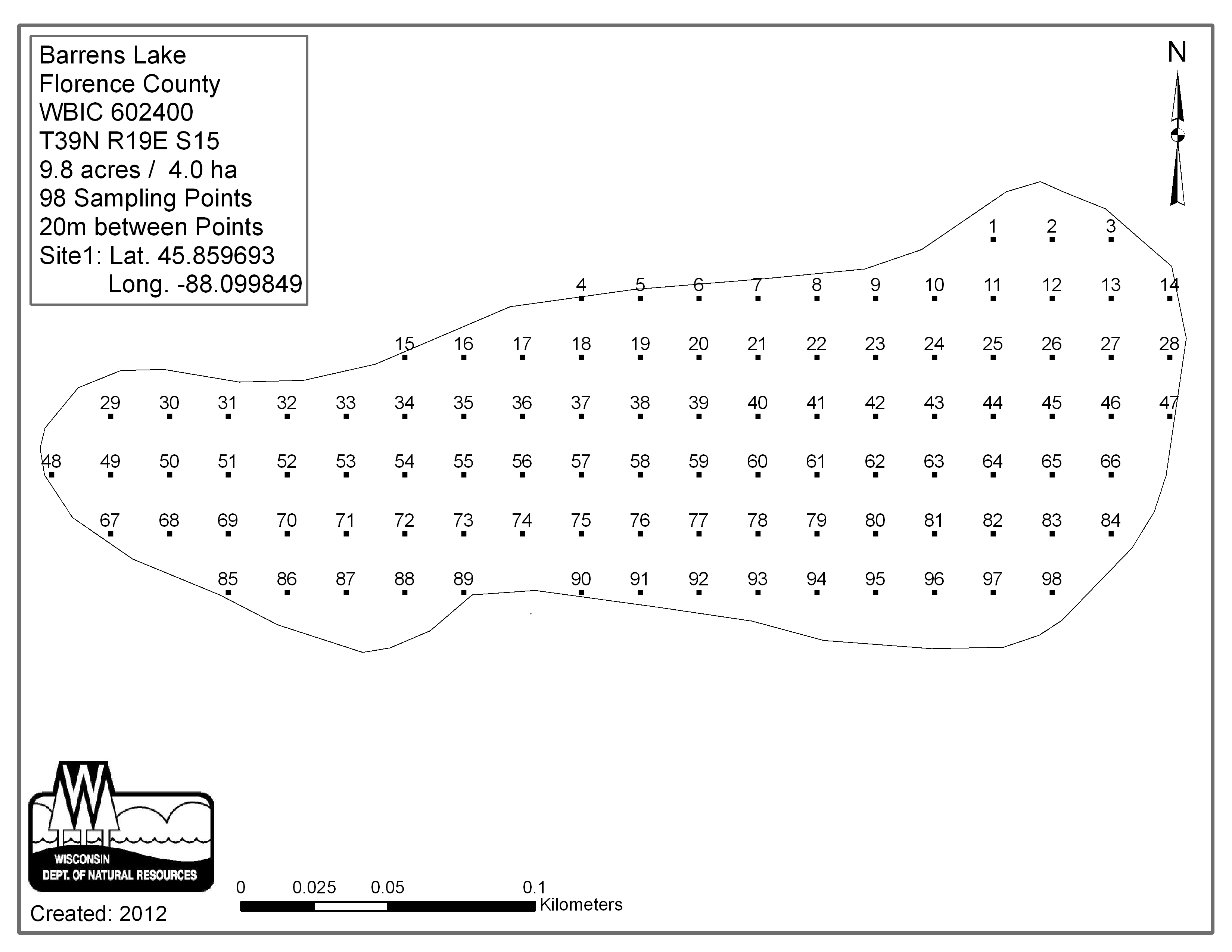 Barrens Lake, Florence County - Aquatic Plant Sampling Map (20 mpts)