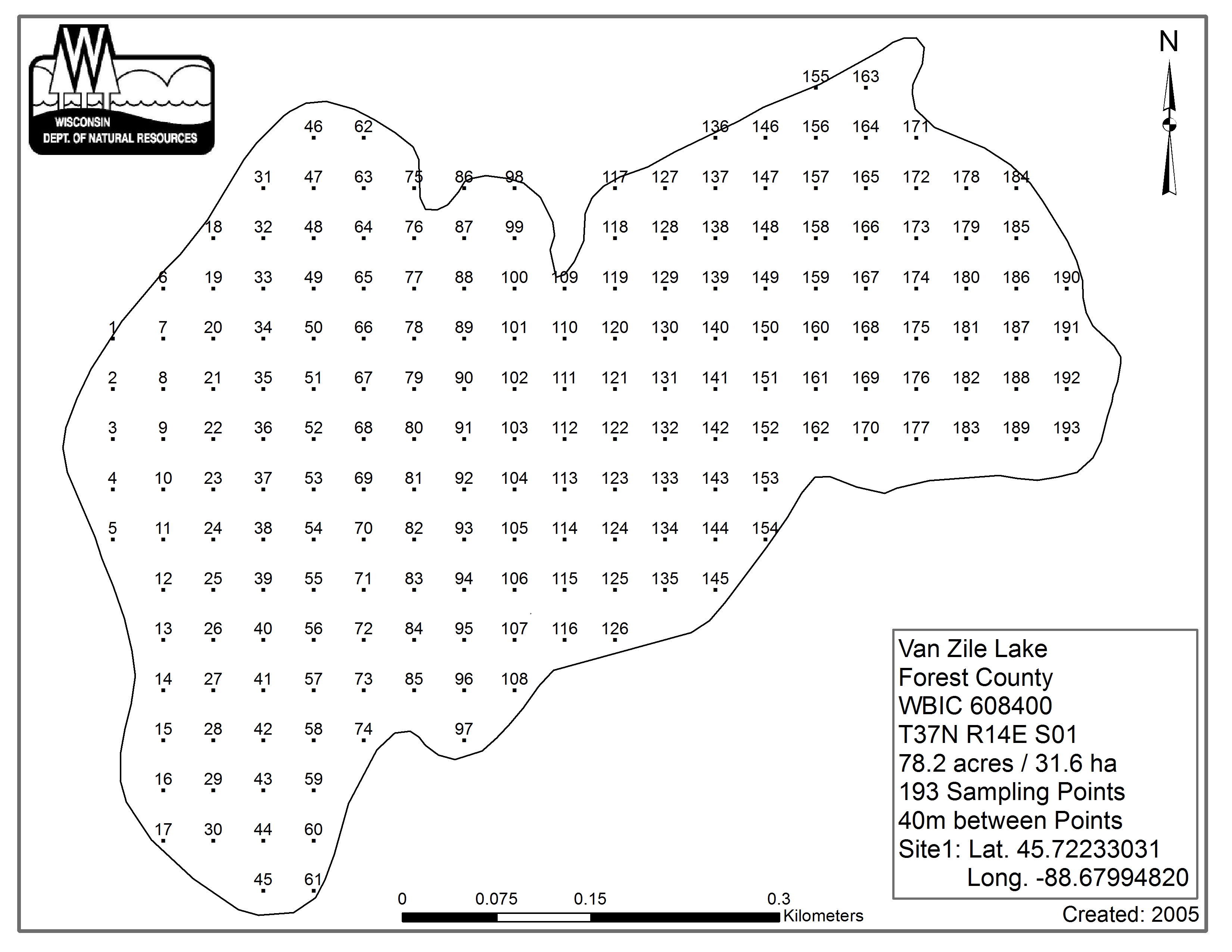 Van Zile Lake, Forest/Florence County - Aquatic Plant Sampling Map (40 mpts)