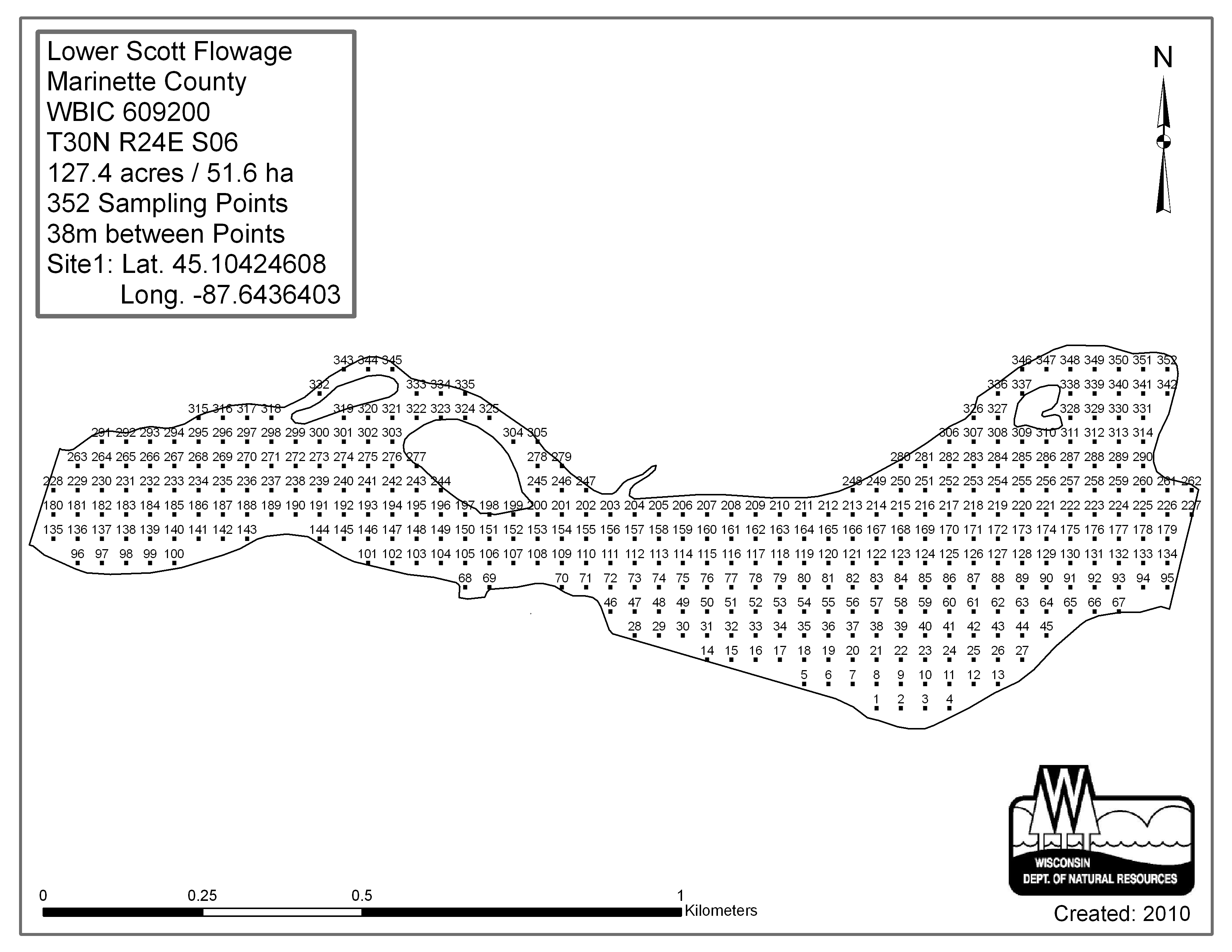 Lower Scott Flowage, Marinette County - Aquatic Plant Sampling Map (38 mpts)