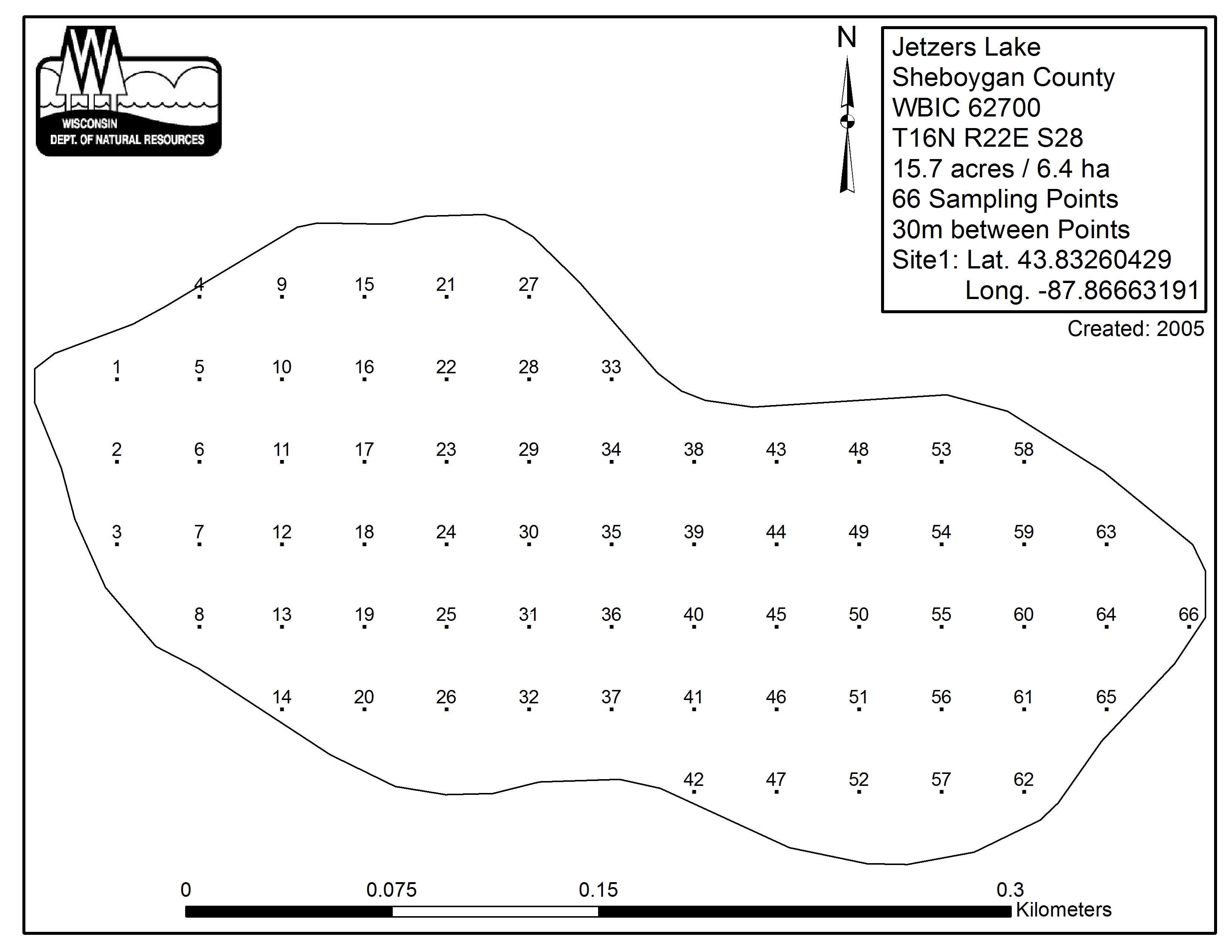 Jetzers Lake, Sheboygan County - Aquatic Plant Sampling Map (30 mpts)