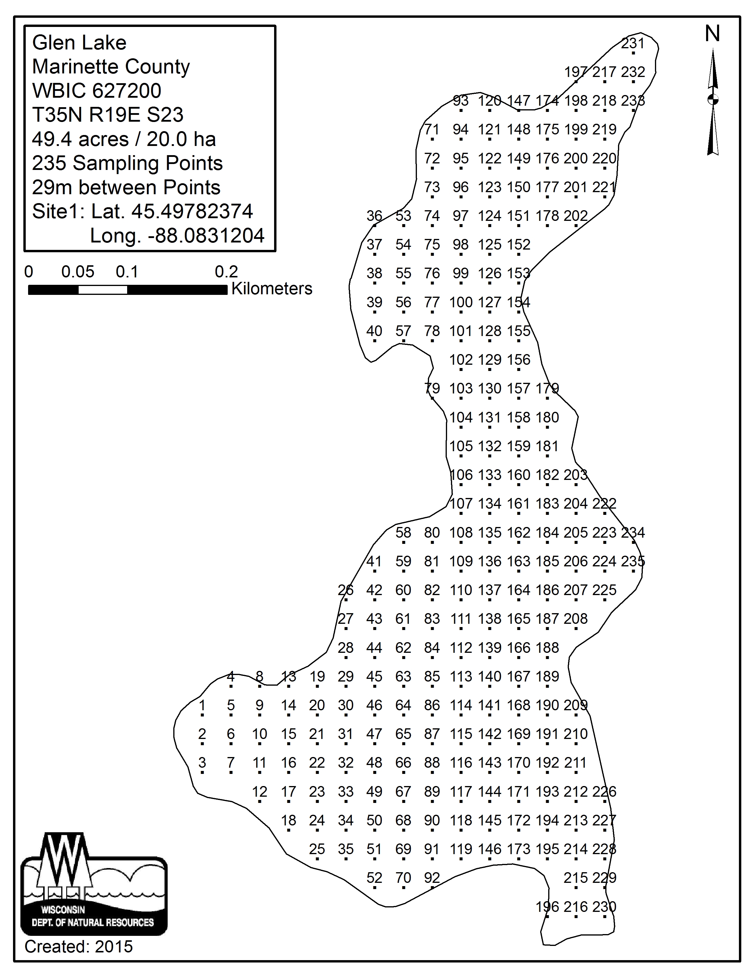 Glen Lake, Marinette County - Aquatic Plant Sampling Map (29 mpts)