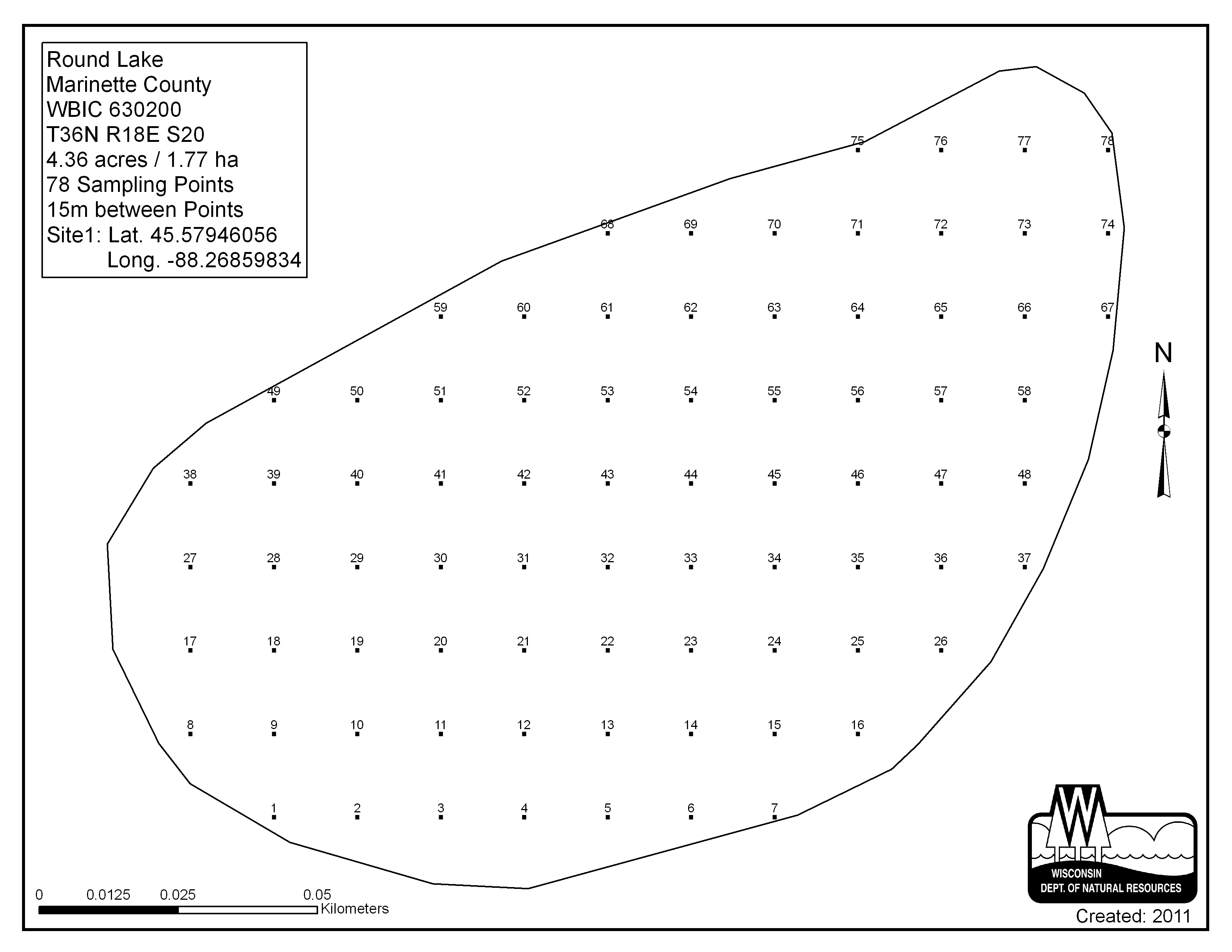 Round Lake, Marinette County - Aquatic Plant Sampling Map (15 mpts)