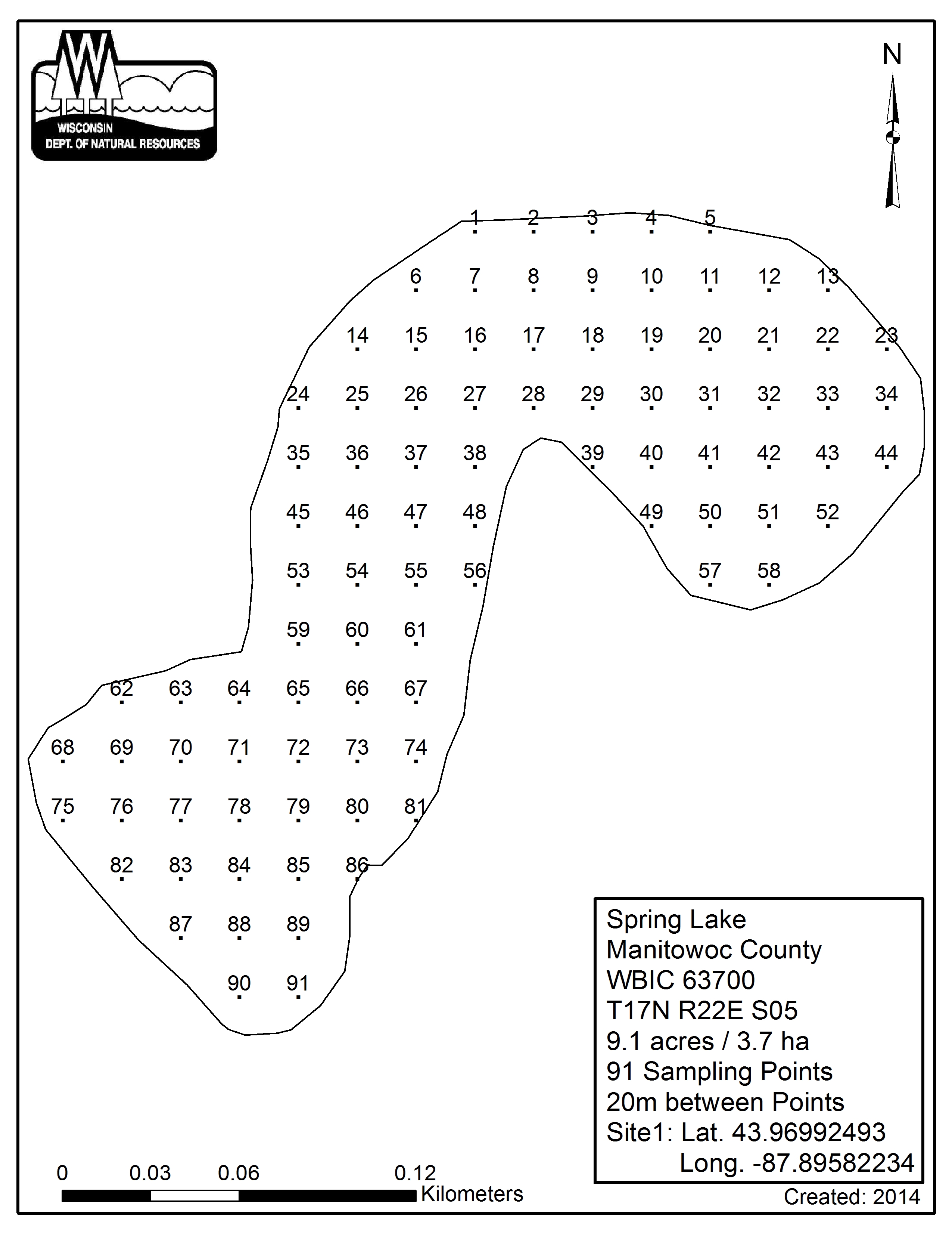 Spring Lake, Manitowoc County - Aquatic Plant Sampling Map (20 mpts)