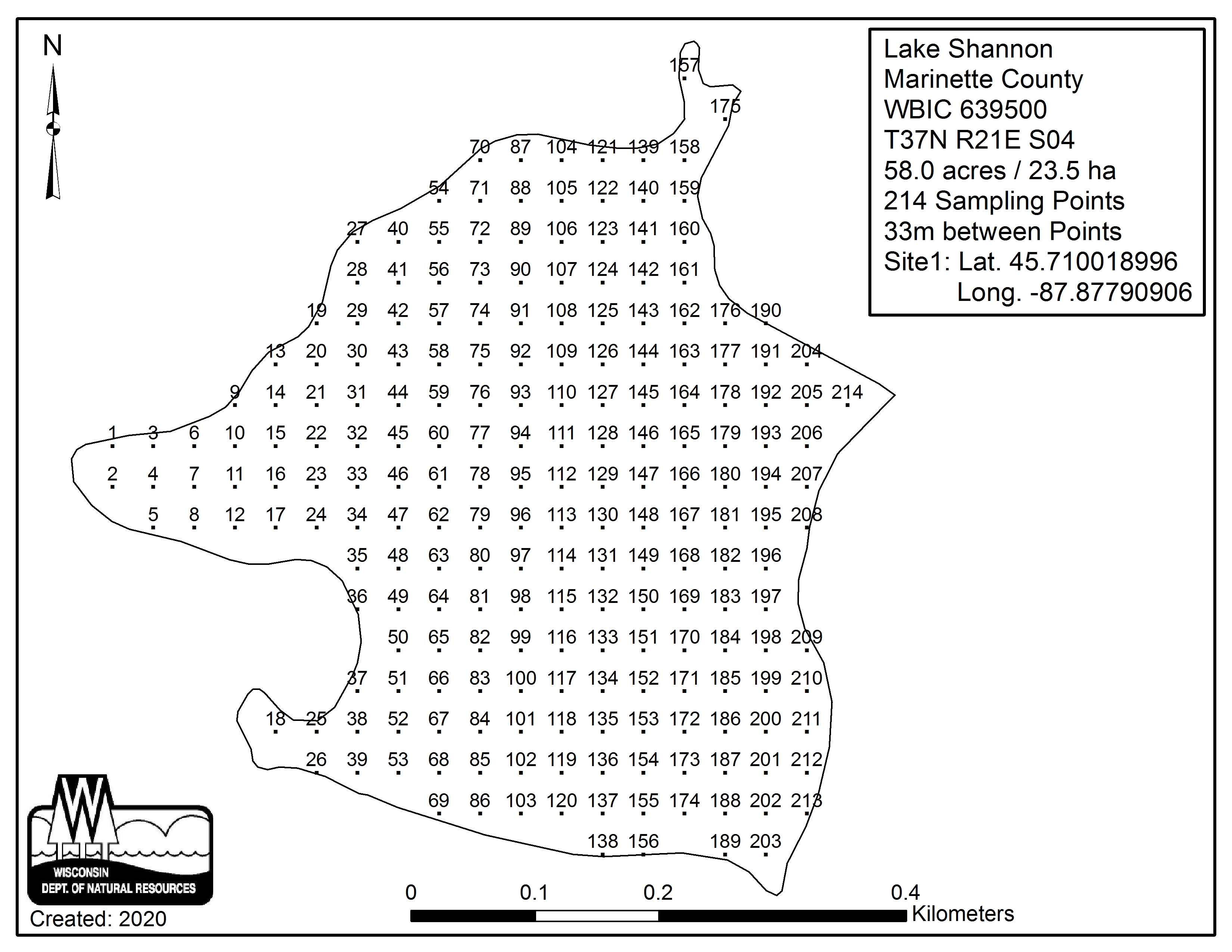 Lake Shannon, Marinette County - Aquatic Plant Sampling Map (33 mpts)