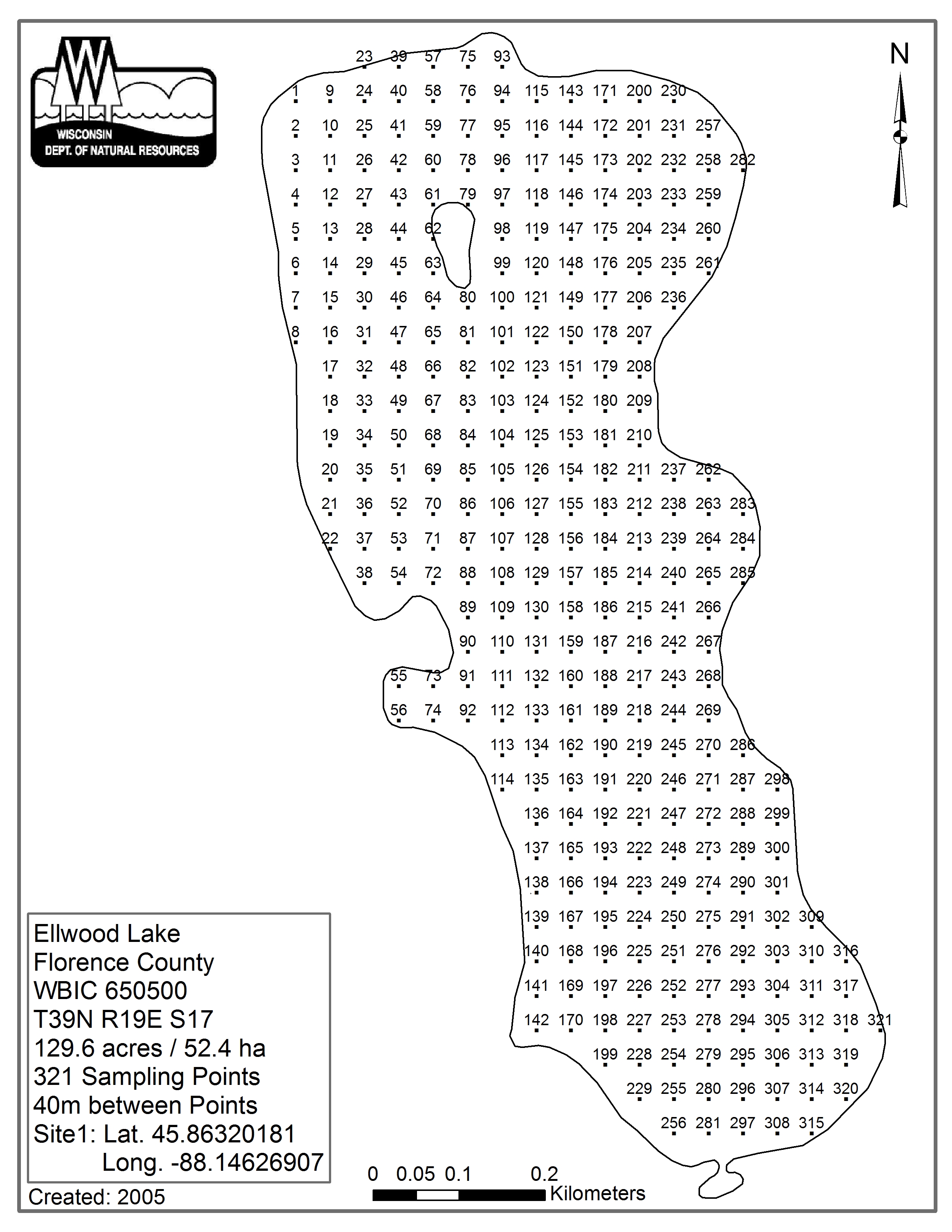 Ellwood Lake, Florence County - Aquatic Plant Sampling Map (40 mpts)
