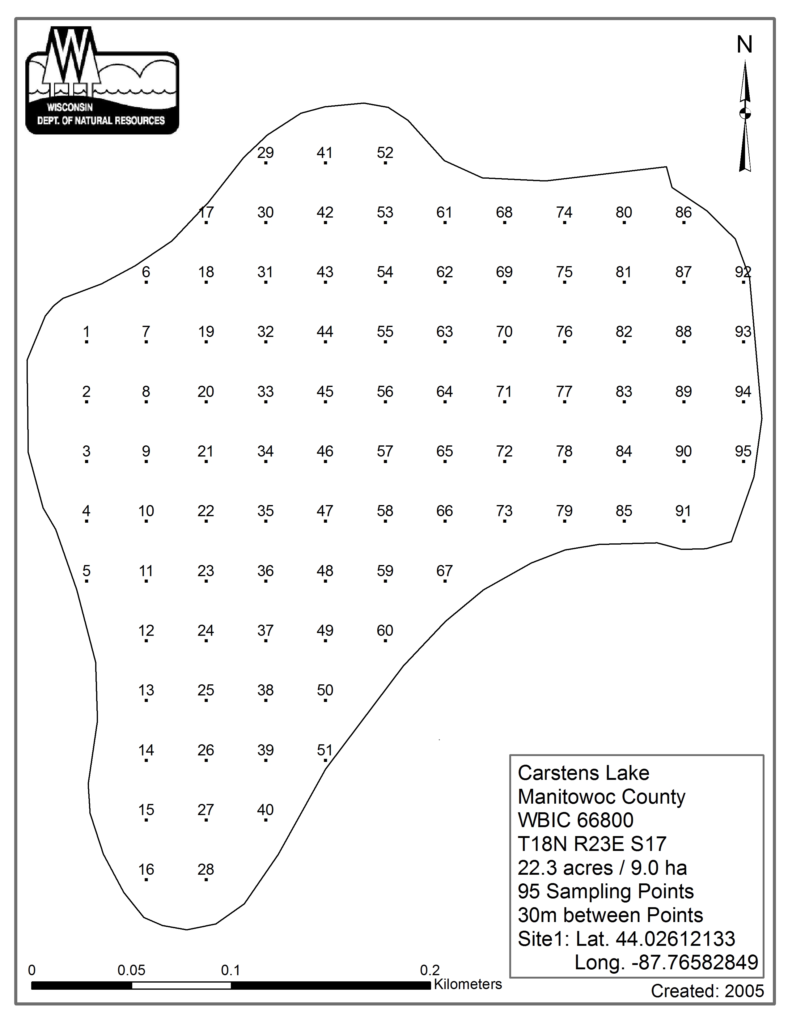 Carstens Lake, Manitowoc County - Aquatic Plant Sampling Map (30 mpts)