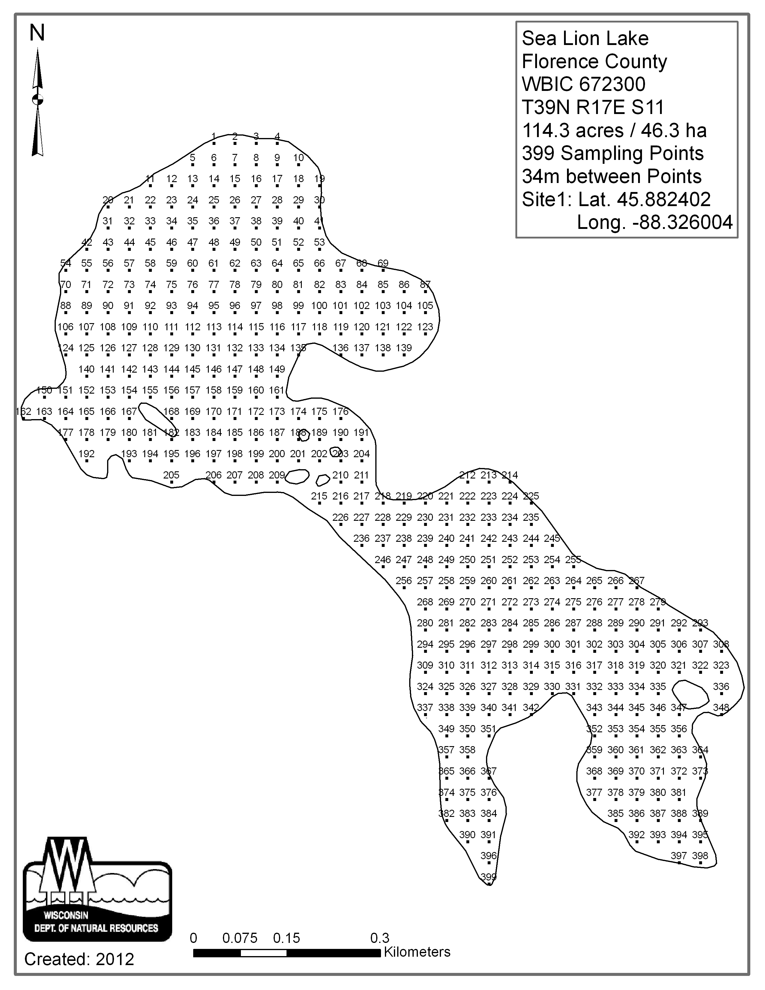 Sea Lion Lake, Florence County - Aquatic Plant Sampling Map (34 mpts)