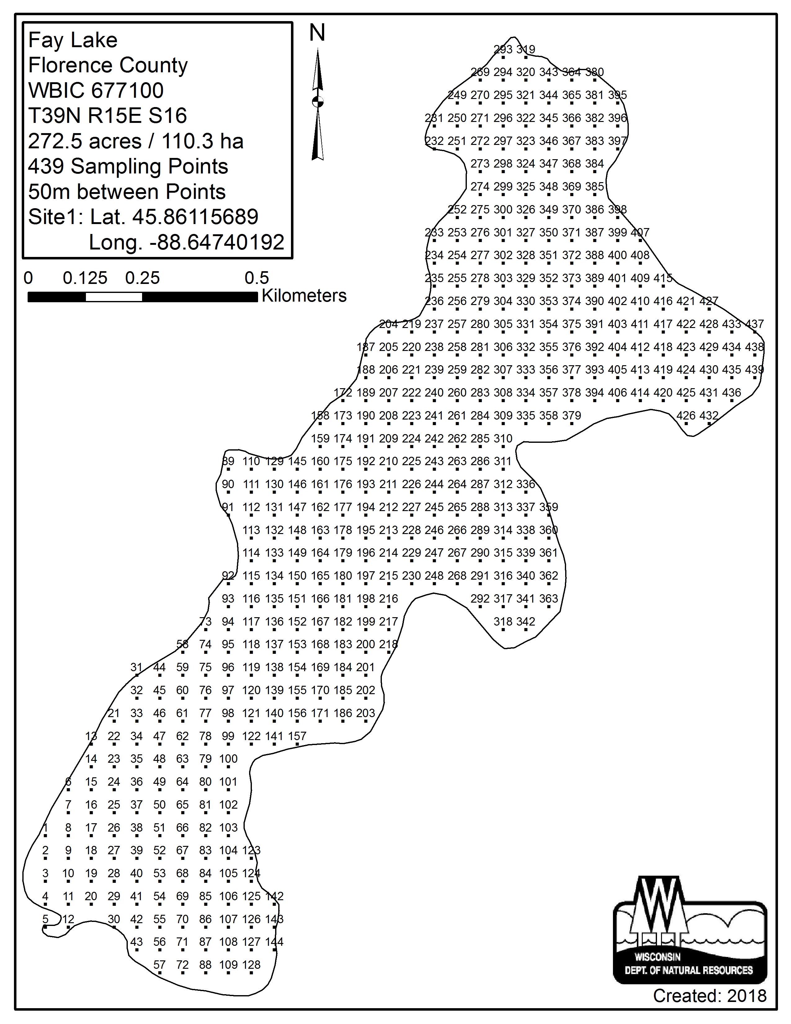 Fay Lake, Florence County - Aquatic Plant Sampling Map (50 mpts)