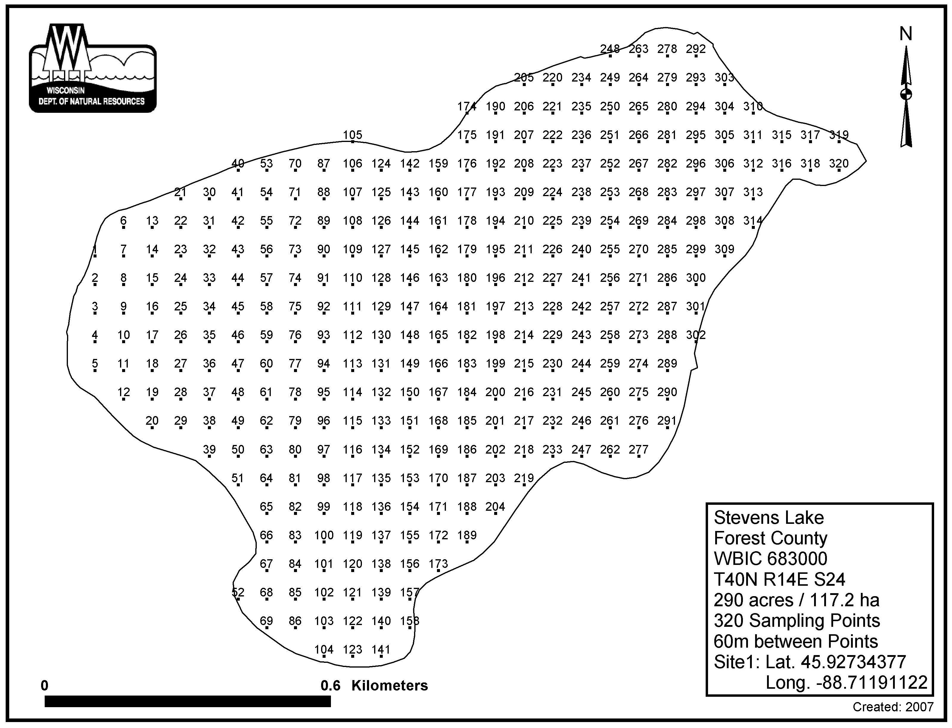 Stevens Lake, Forest County - Aquatic Plant Sampling Map (60 mpts)