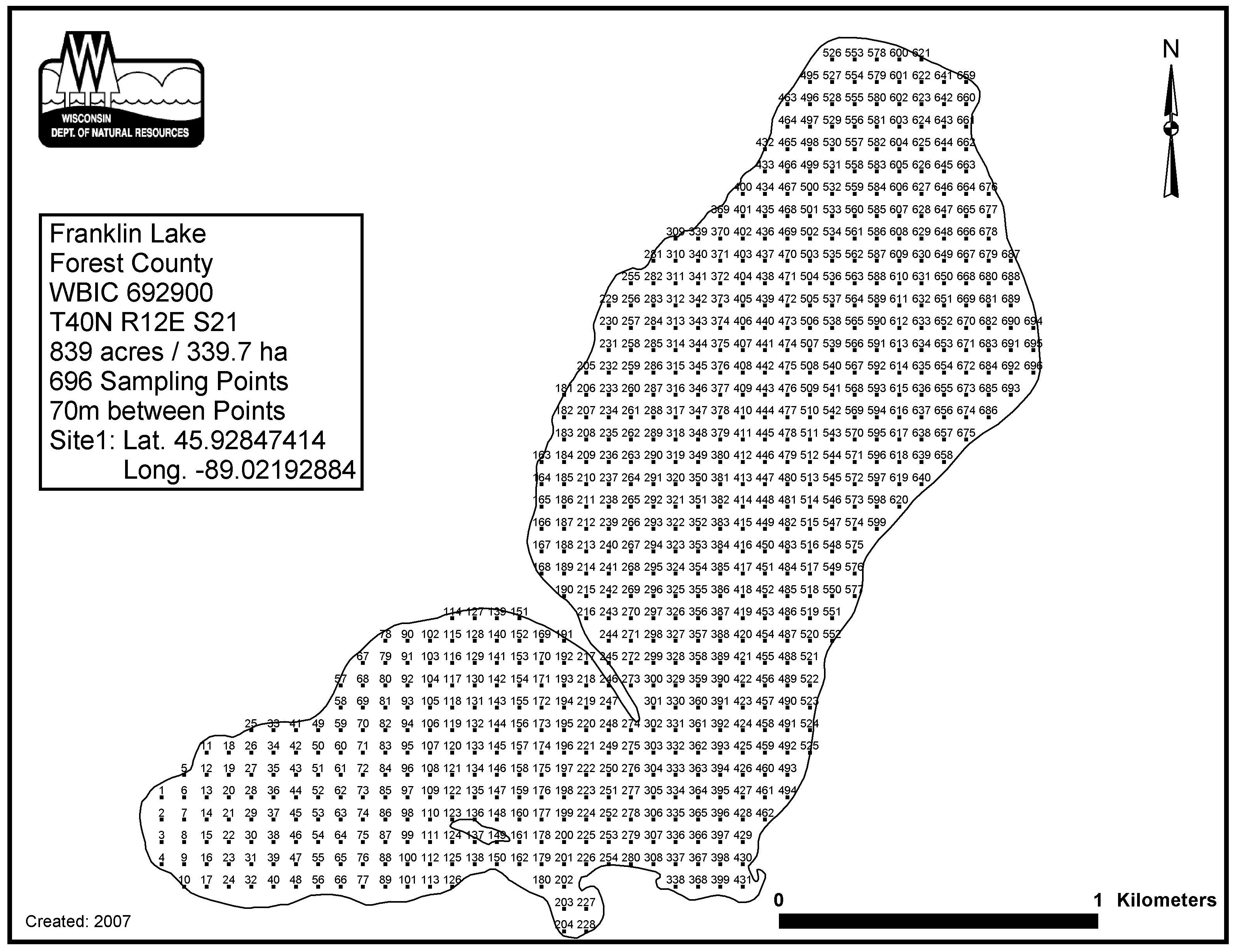 Franklin Lake, Forest County - Aquatic Plant Sampling Map (70 mpts)