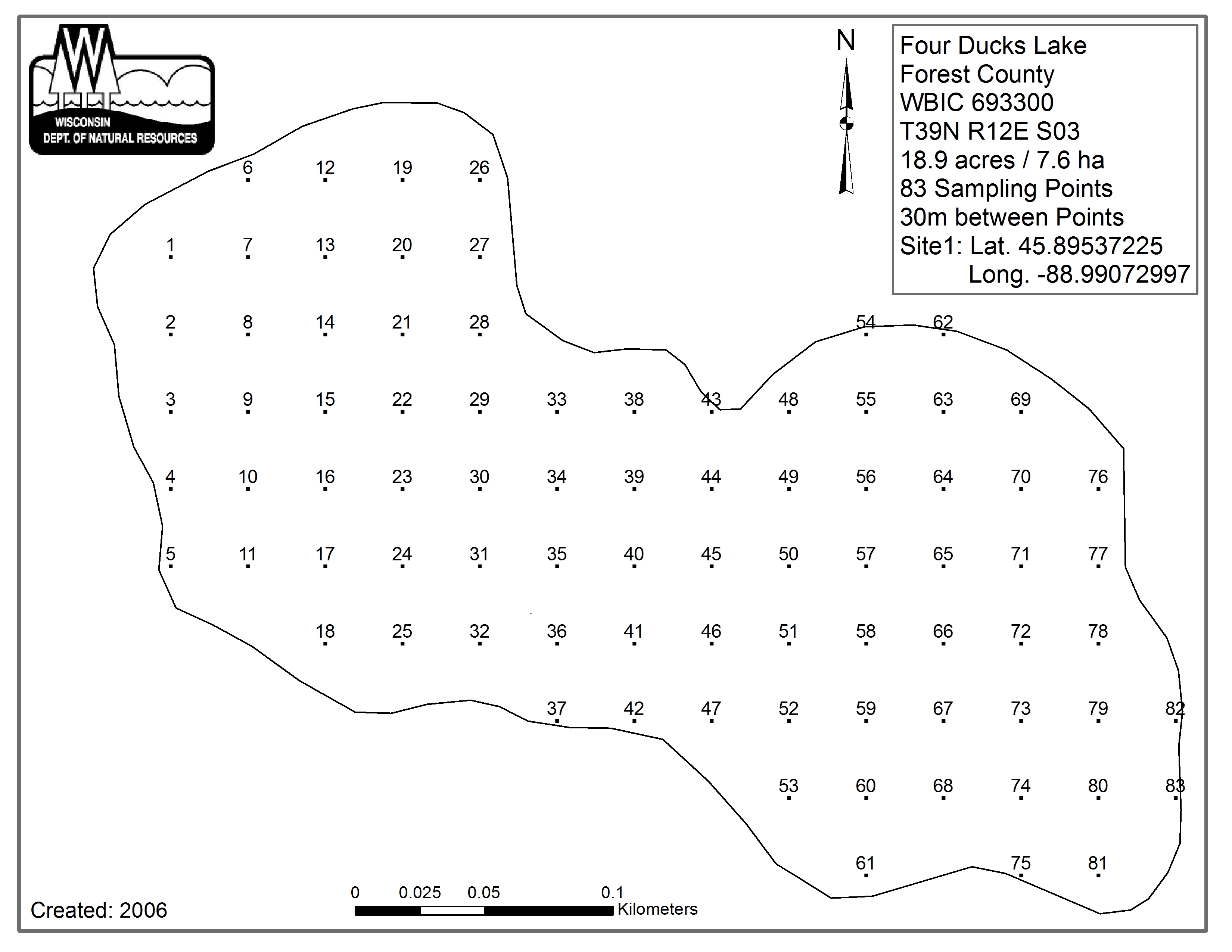 Four Ducks Lake, Forest County - Aquatic Plant Sampling Map (30 mpts)