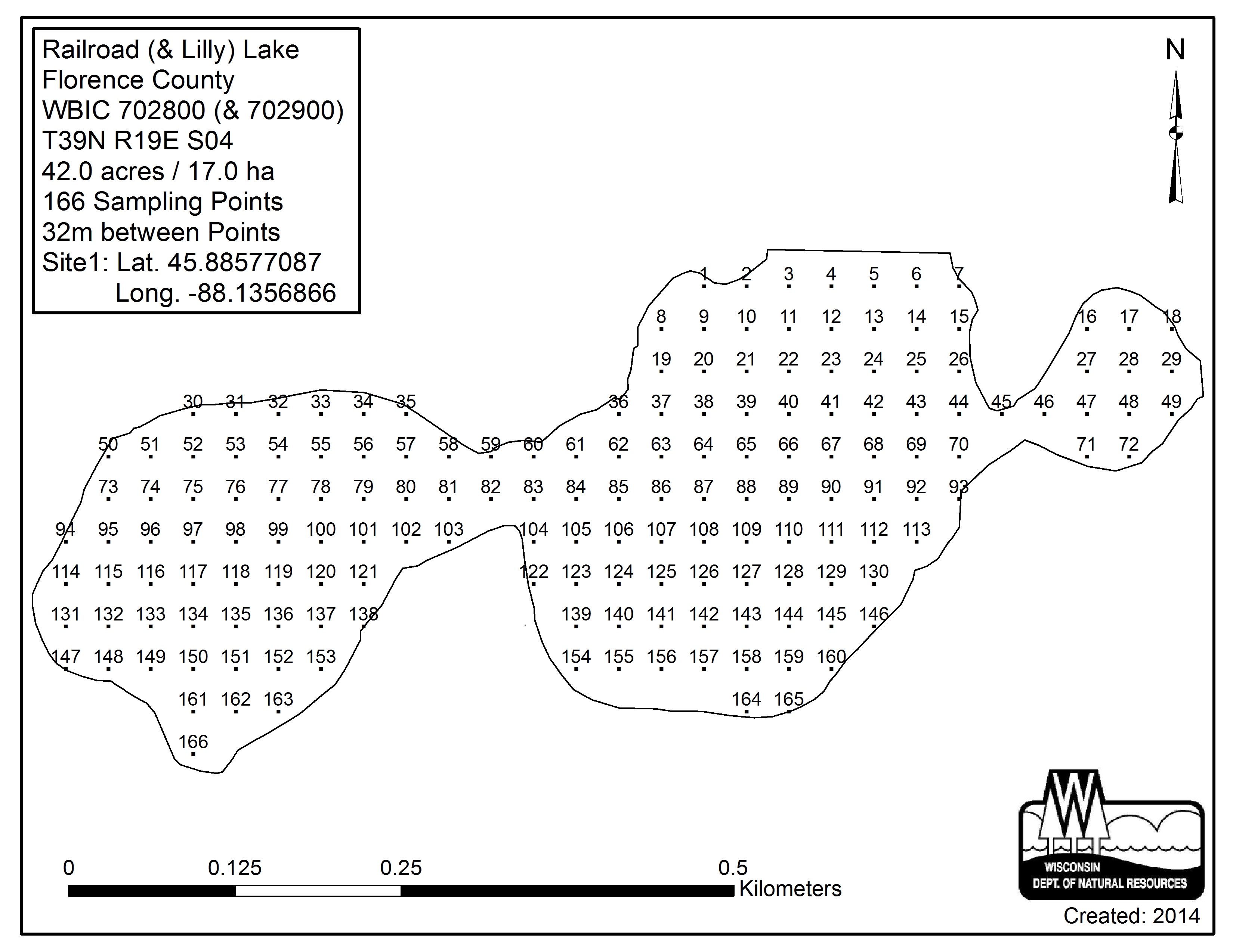 Railroad Lake, Florence County - Aquatic Plant Sampling Map (32 mpts)