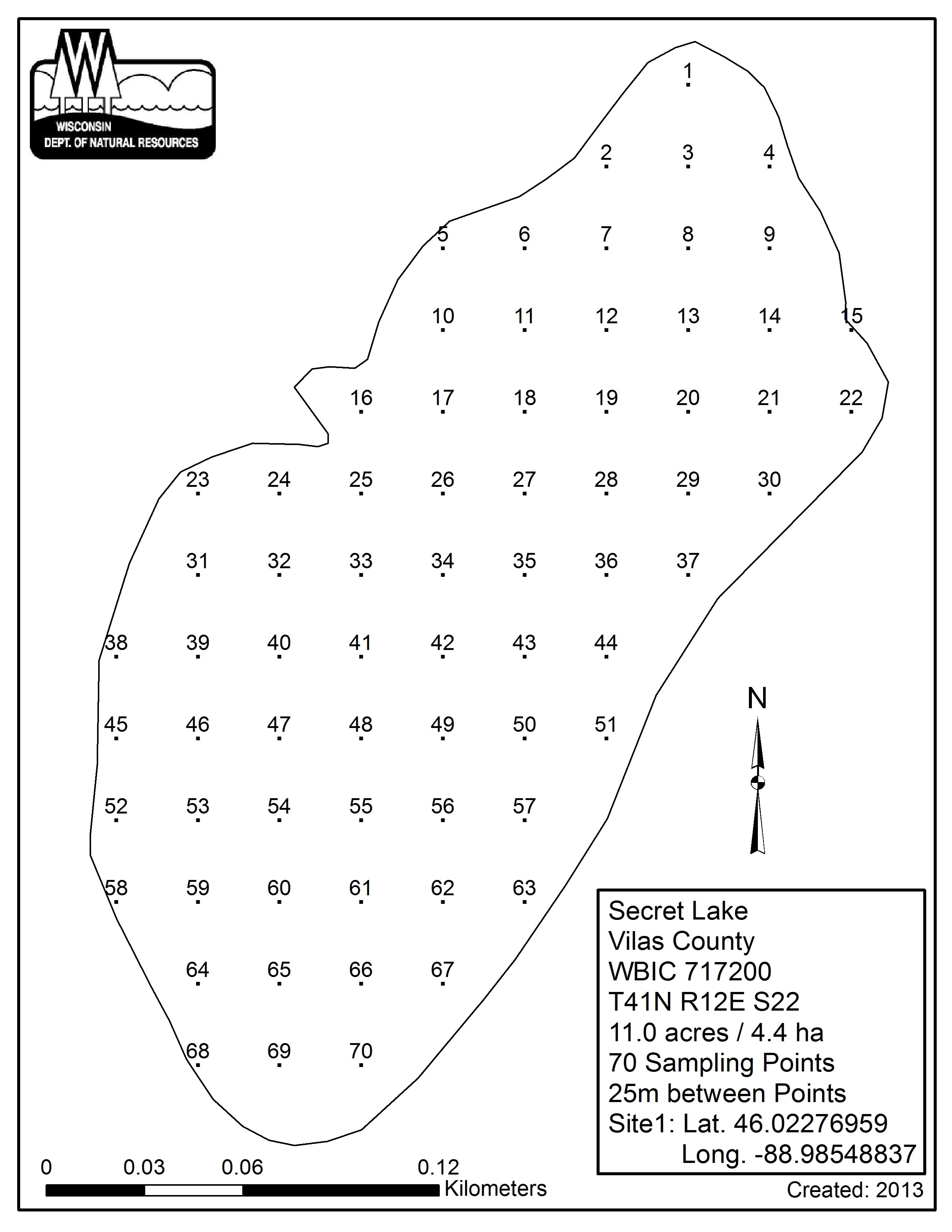 Secret Lake, Vilas County - Aquatic Plant Sampling Map (25 mpts)