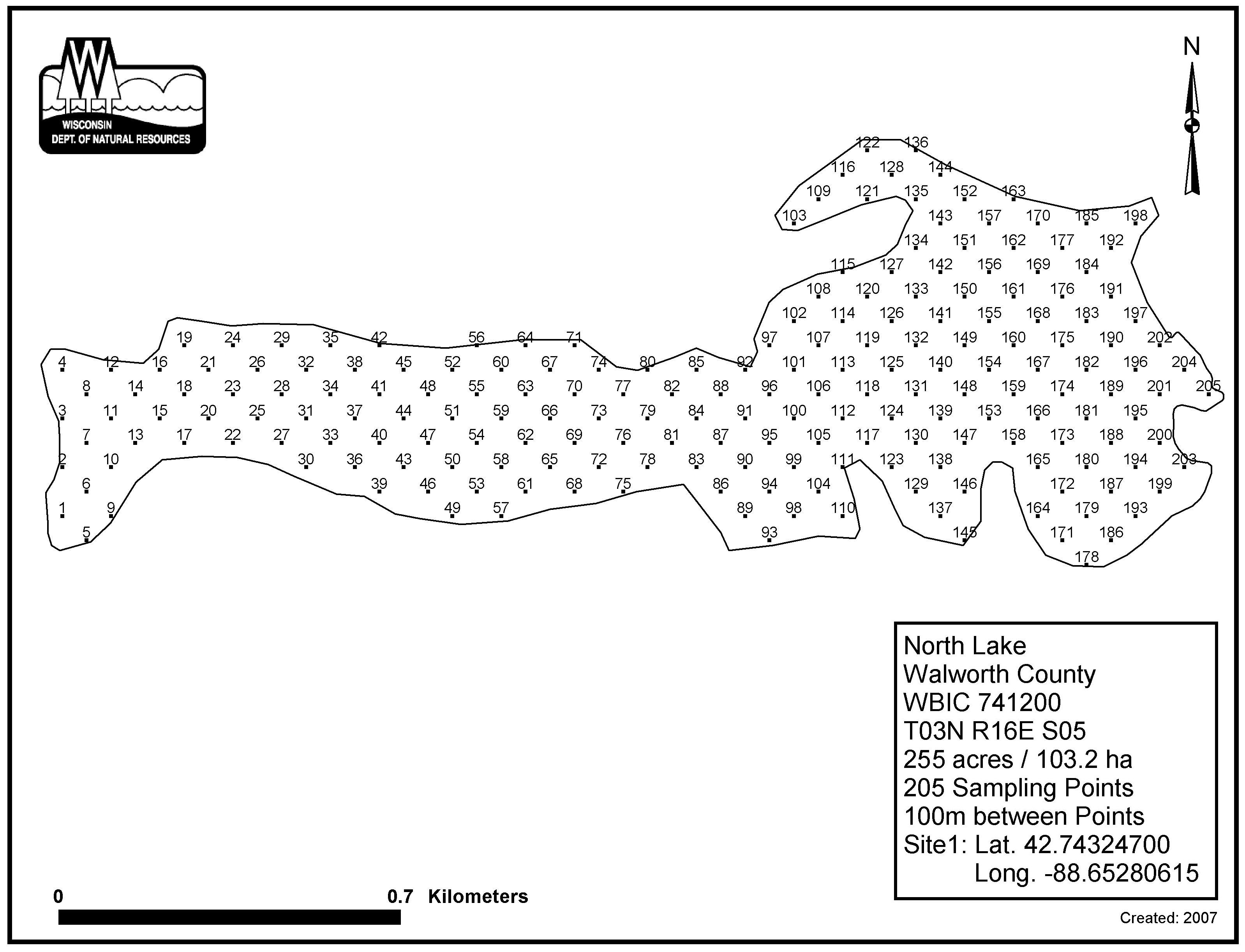 North Lake, Walworth County - Aquatic Plant Sampling Map (100 mpts)