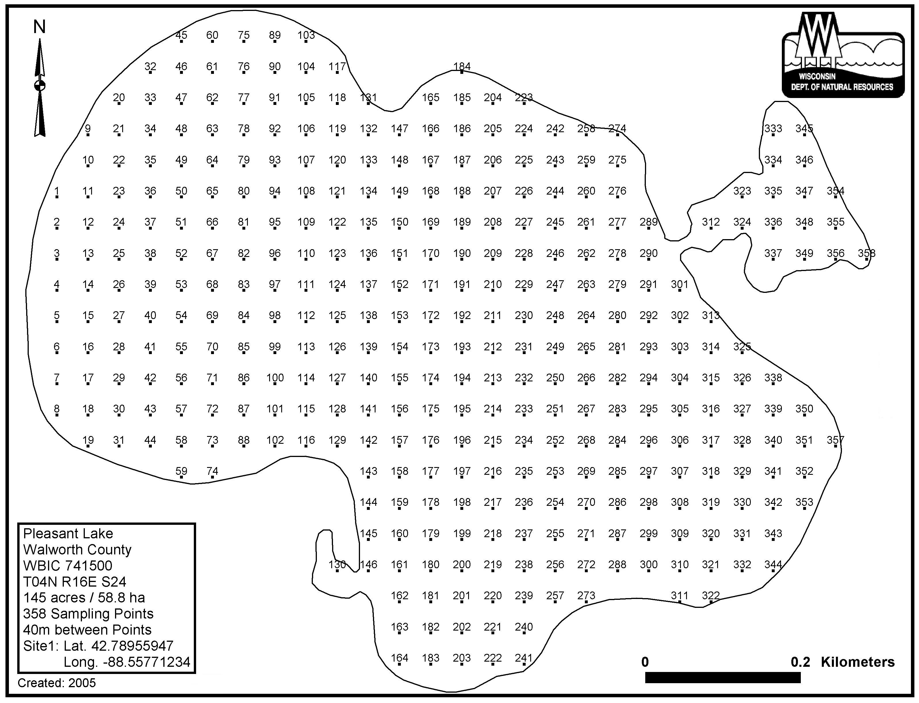 Pleasant Lake, Walworth County - Aquatic Plant Sampling Map (40 mpts)