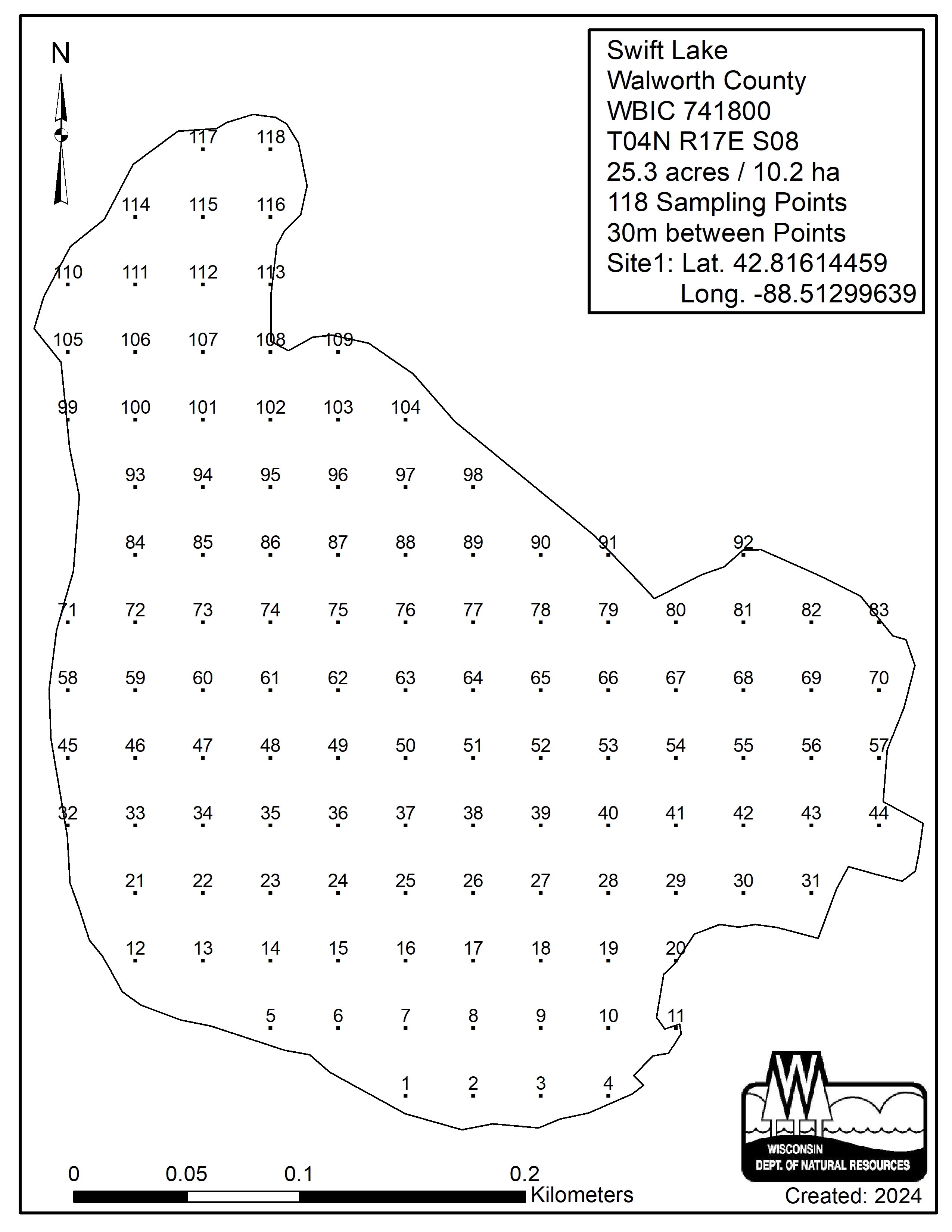 Swift Lake, Walworth County - Aquatic Plant Sampling Map (30 mpts)