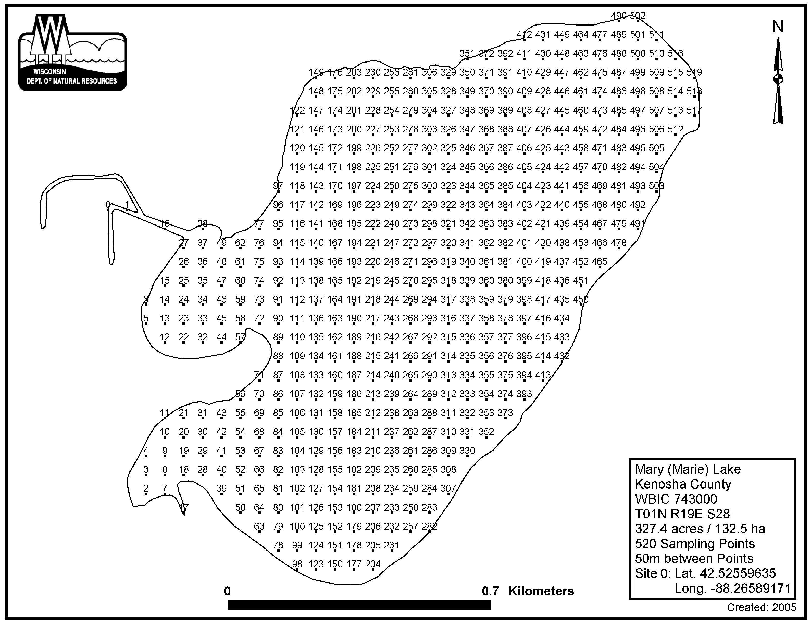 Lake Mary, Kenosha County - Aquatic Plant Sampling Map (50 mpts)