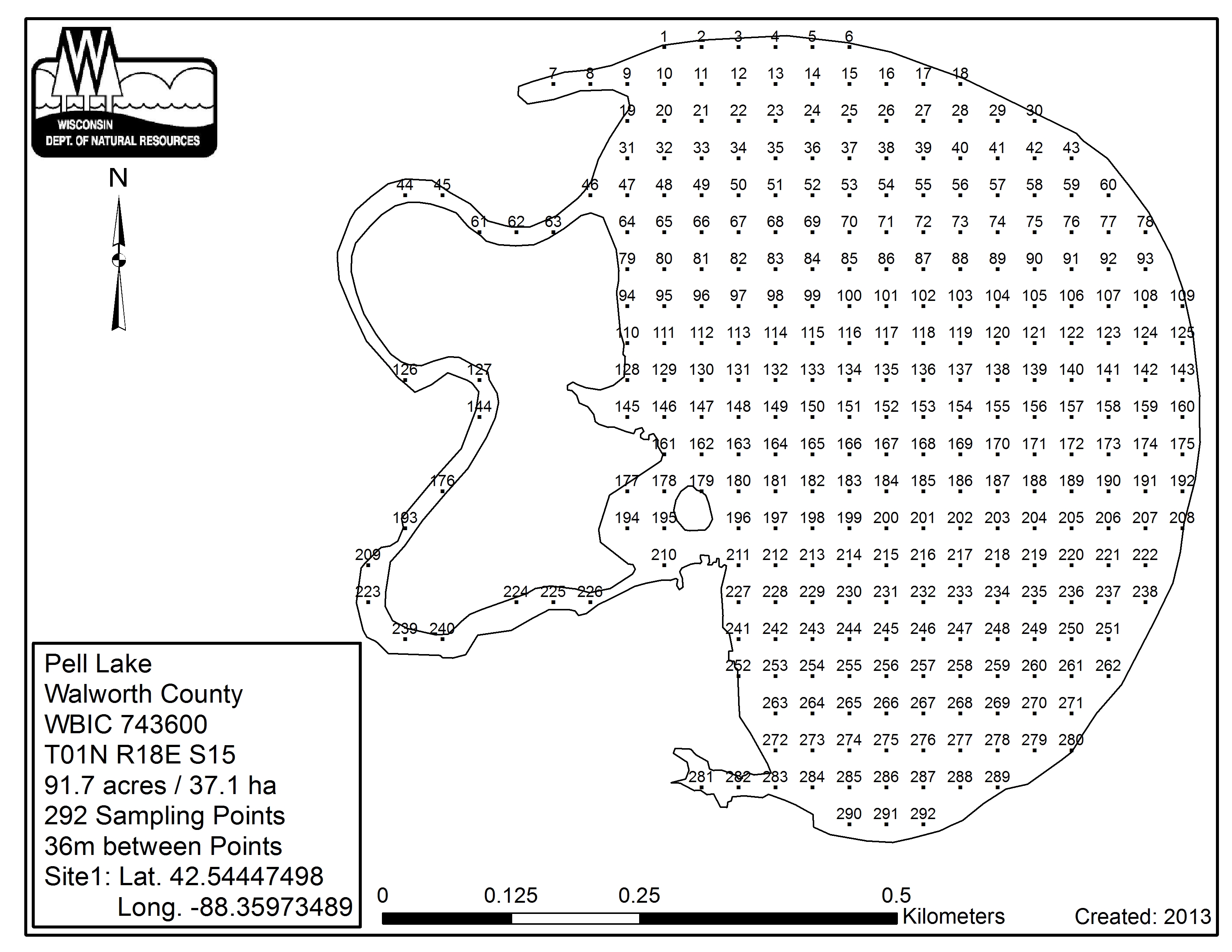 Pell Lake, Walworth County - Aquatic Plant Sampling Map (36 mpts)