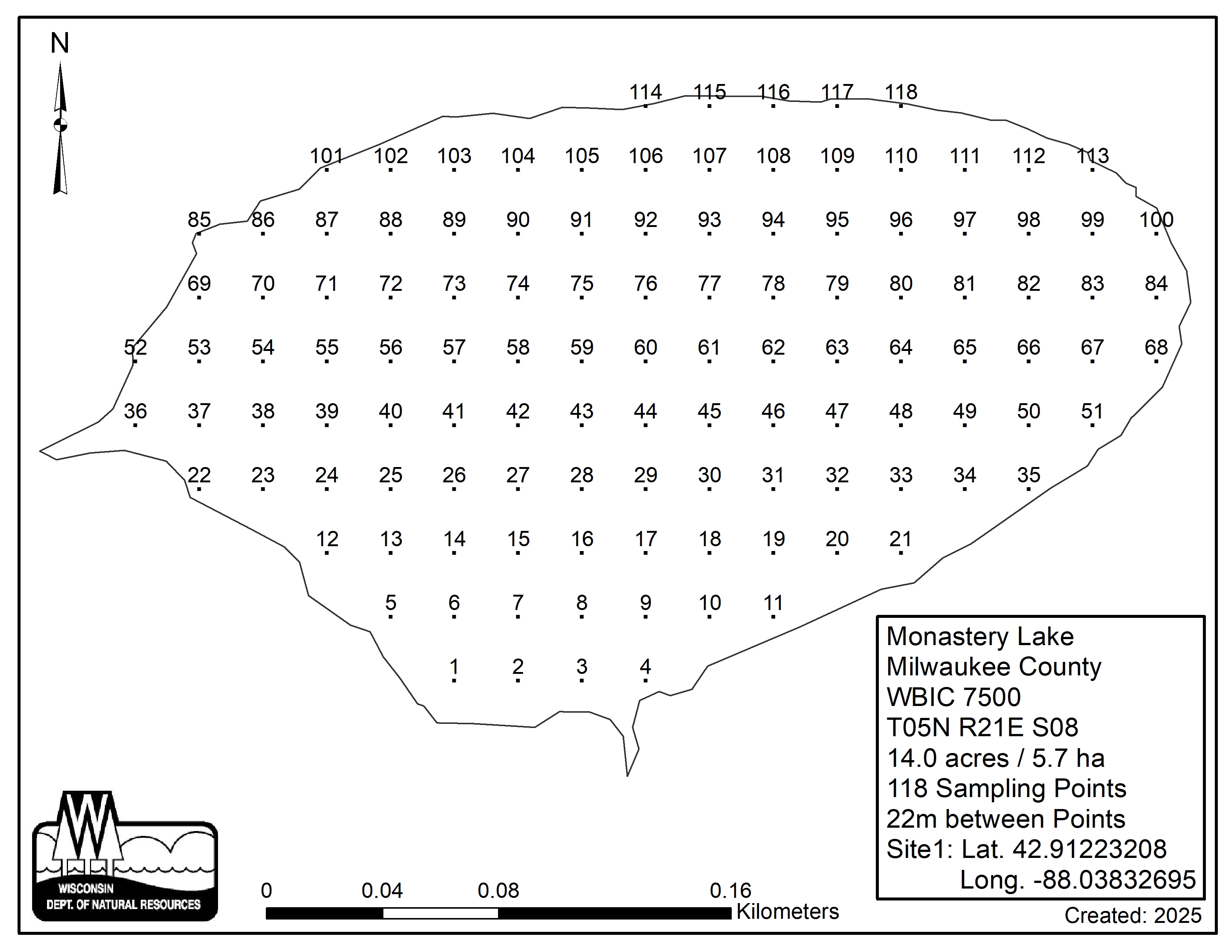 Monastery Lake, Milwaukee County - Aquatic Plant Sampling Map (22 mpts)