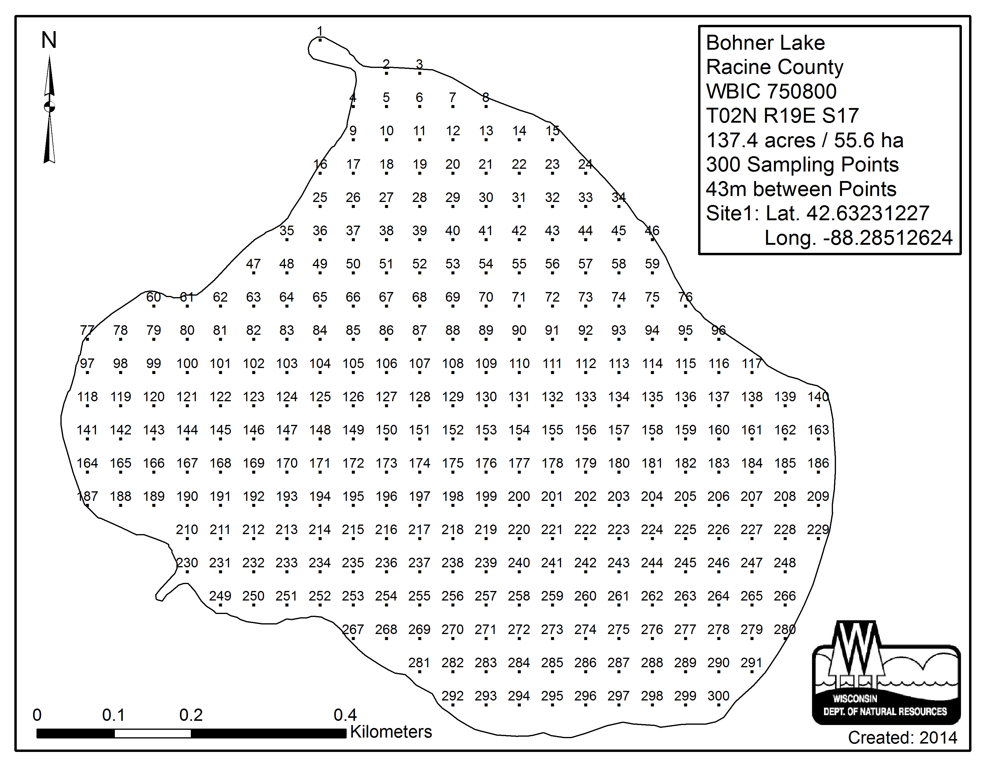 Bohner Lake, Racine County - Aquatic Plant Sampling Map (43 mpts)