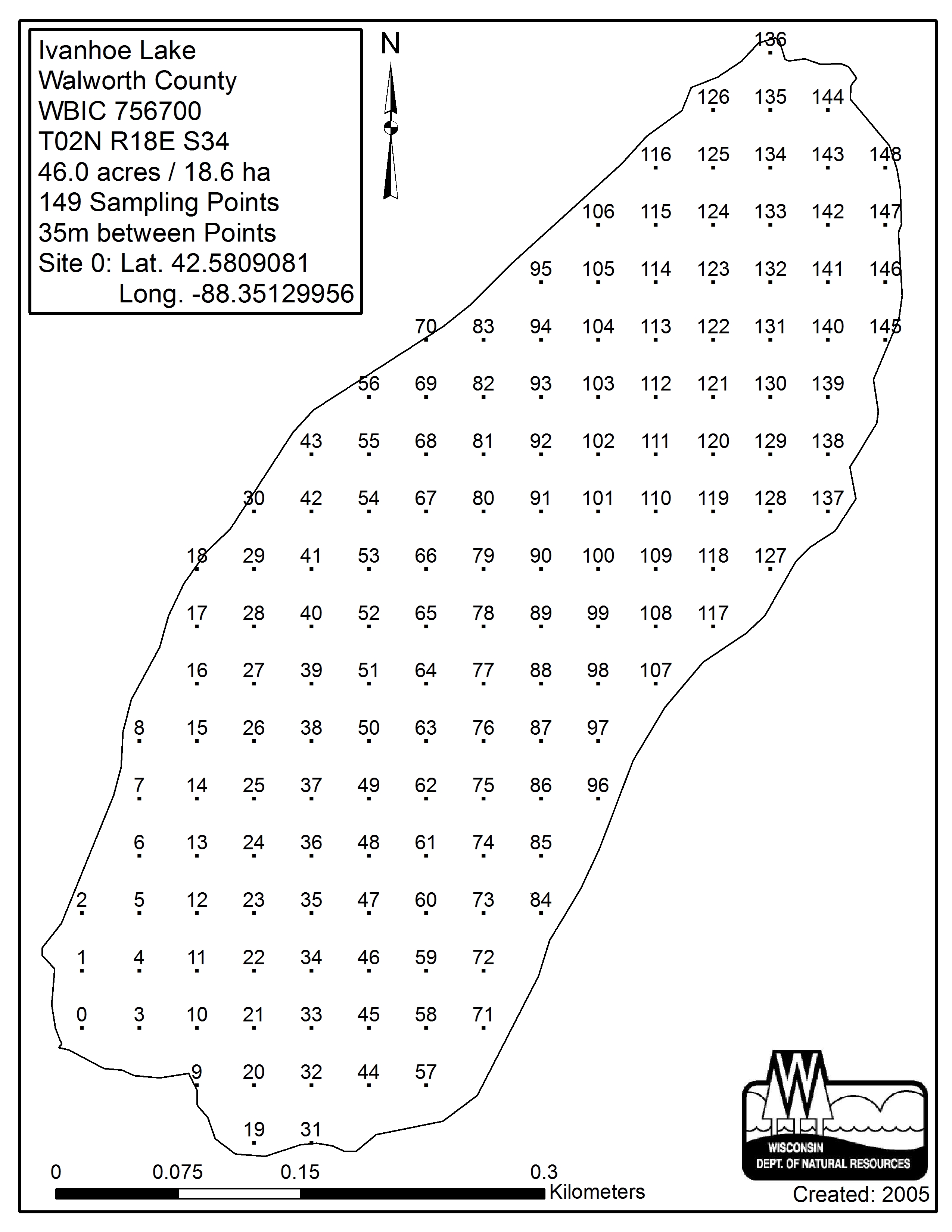 Lake Ivanhoe, Walworth County - Aquatic Plant Sampling Map (35 mpts)