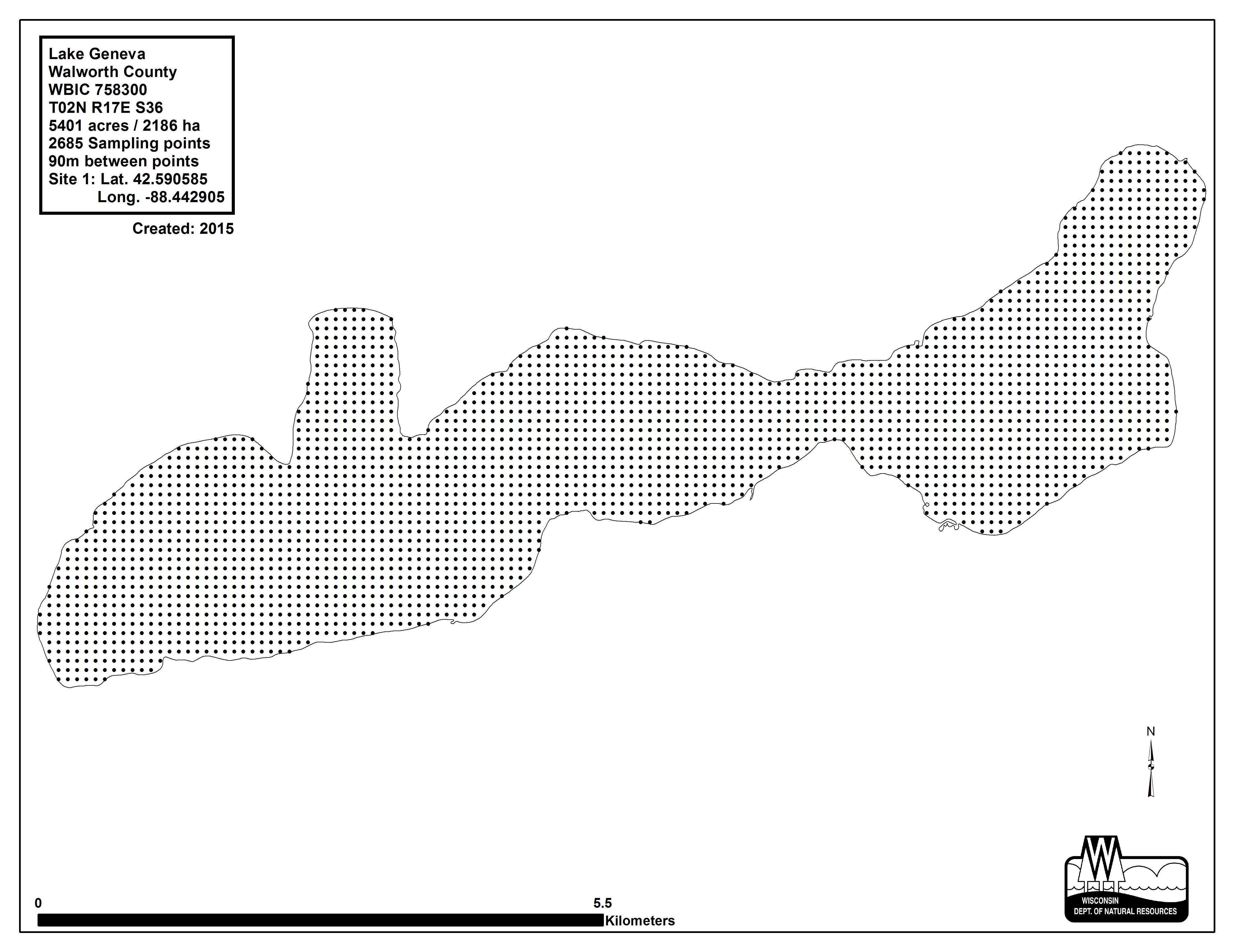 Geneva Lake, Walworth County - Aquatic Plant Sampling Map (5) (90 mpts)