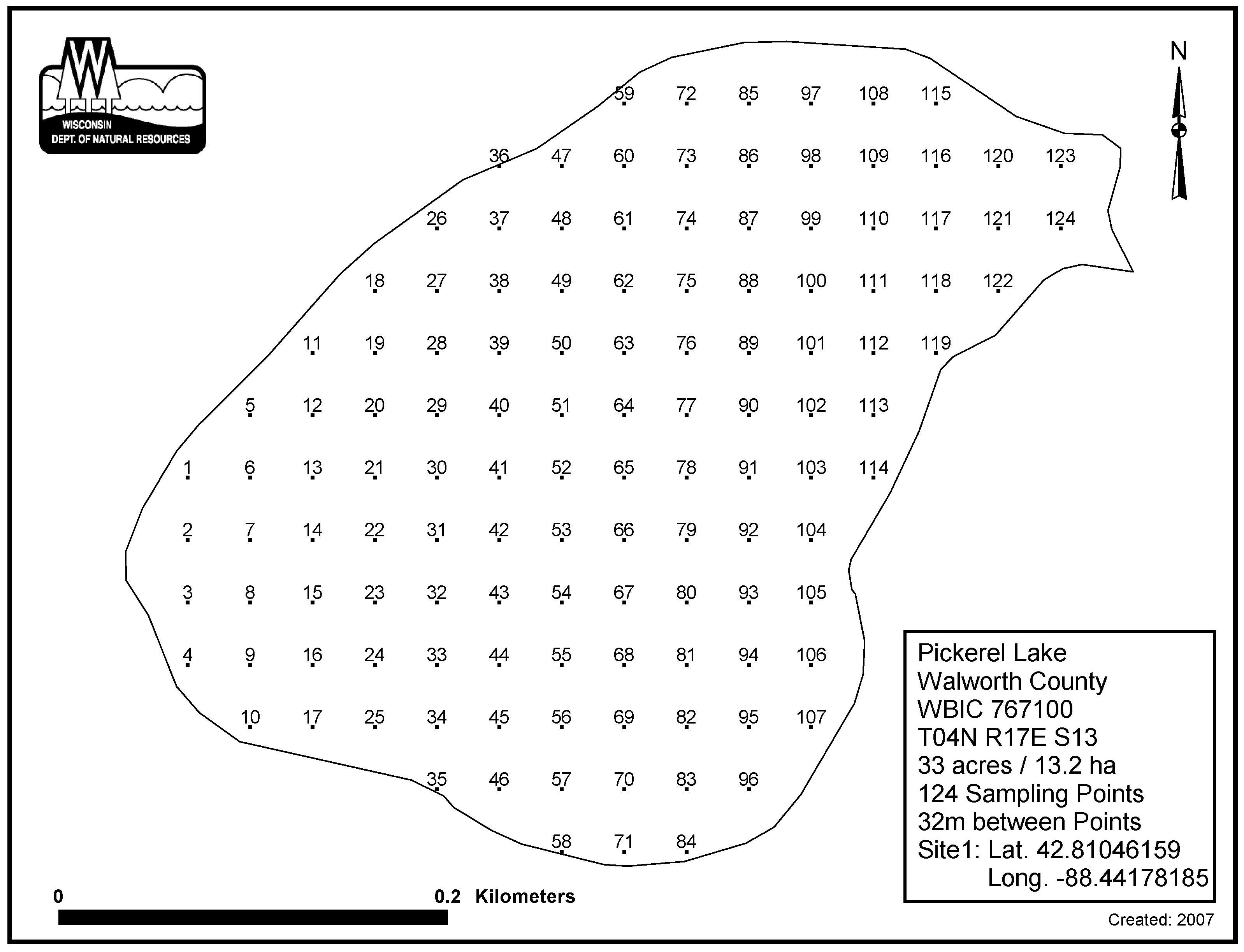 Pickerel Lake, Walworth County - Aquatic Plant Sampling Map (32 mpts)