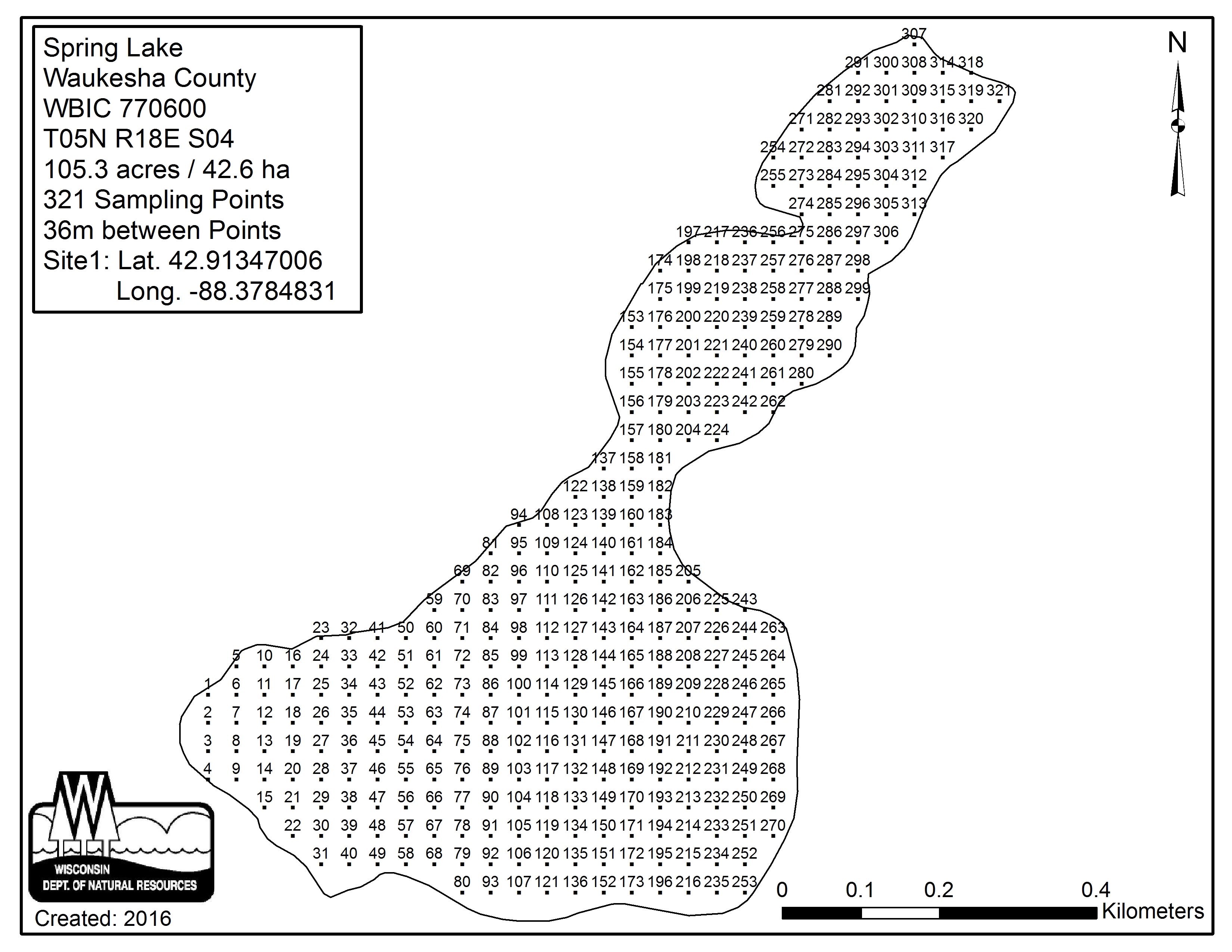 Spring Lake, Waukesha County - Aquatic Plant Sampling Map (36 mpts)