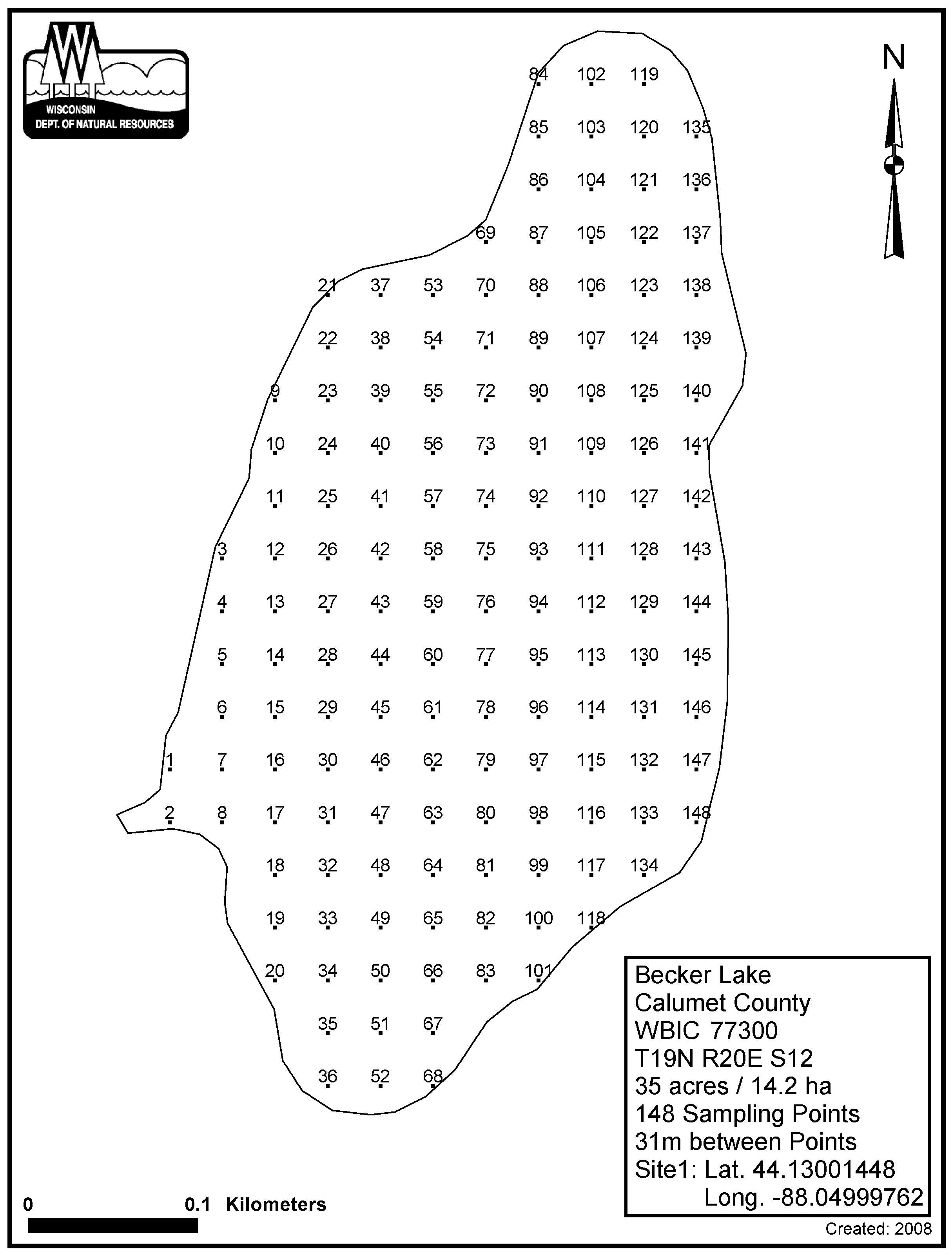 Becker Lake, Calumet County - Aquatic Plant Sampling Map (31 mpts)