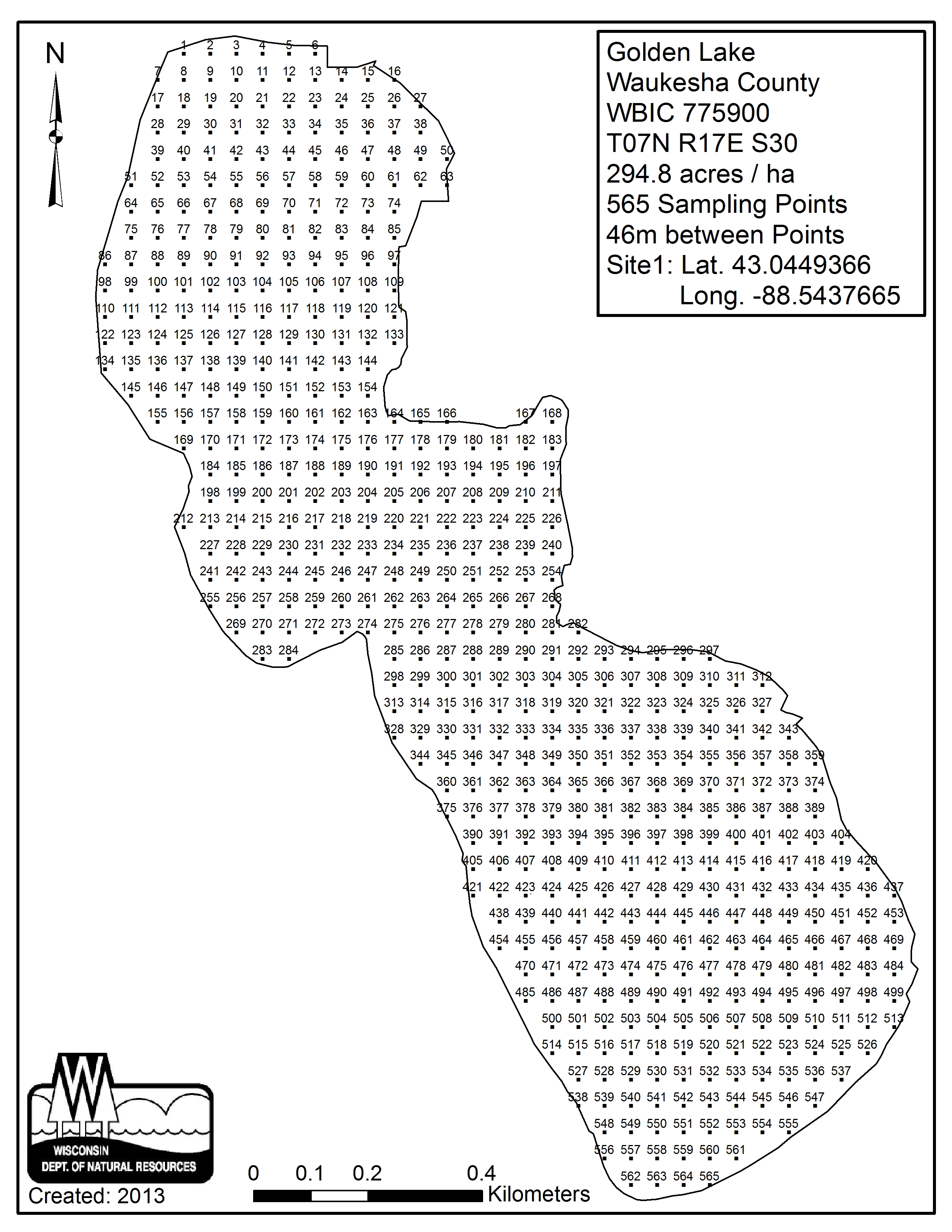 Golden Lake, Waukesha County - Aquatic Plant Sampling Map (46 mpts)